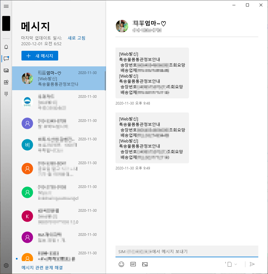 이제 윈도우 PC화면에서 문자도 바로 날리고