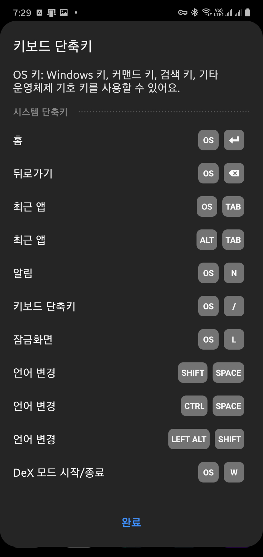 다만 PC화면에서 휴대폰을 사용할 때 사용되는 단축 키보드는 아래와 같습니다.