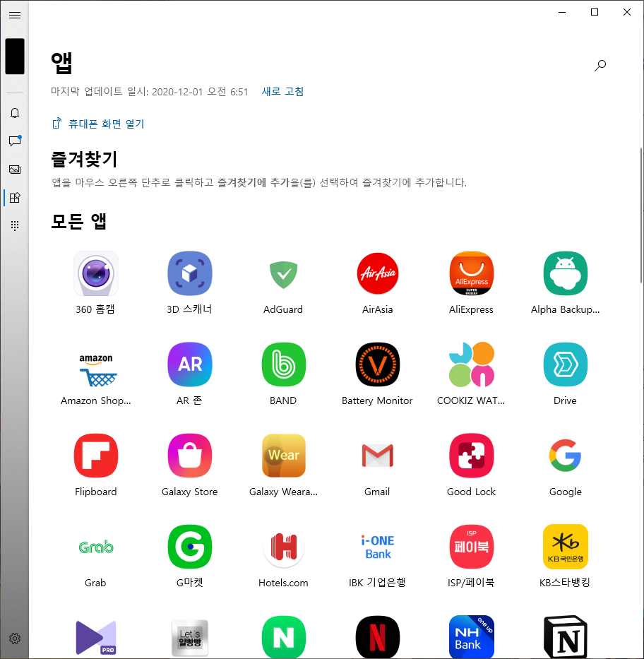 윈도우 작업줄에 휴대폰 아이콘이 생기고