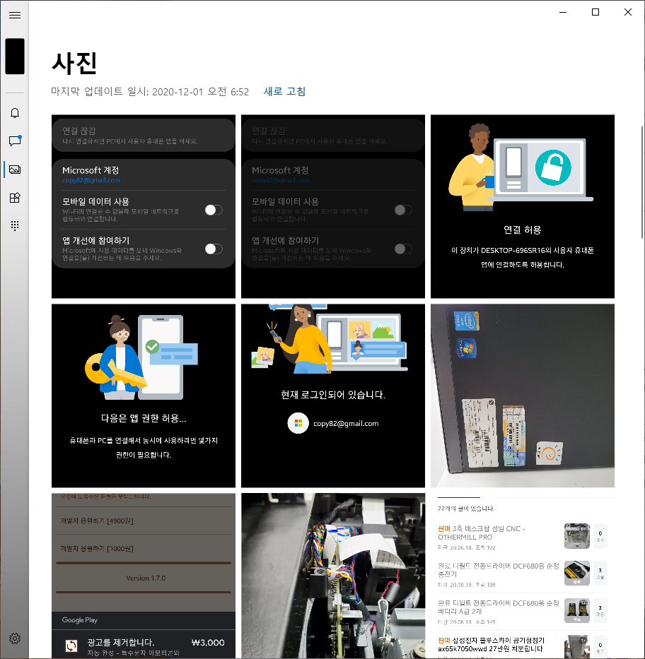 갤러리 또한 확인이 가능하며 사진을 PC로 바로 가져올 수 있습니다.