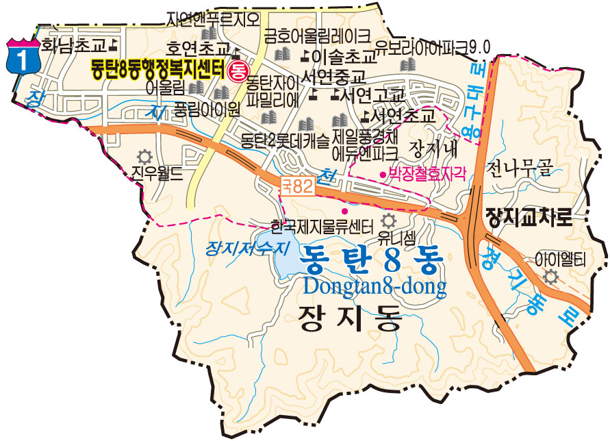 동탄은 1동부터 8동까지 겁나 많은 동으로 구성되어 지도 또한 1동부터 8동까지 준비되어 있습니다. ^^