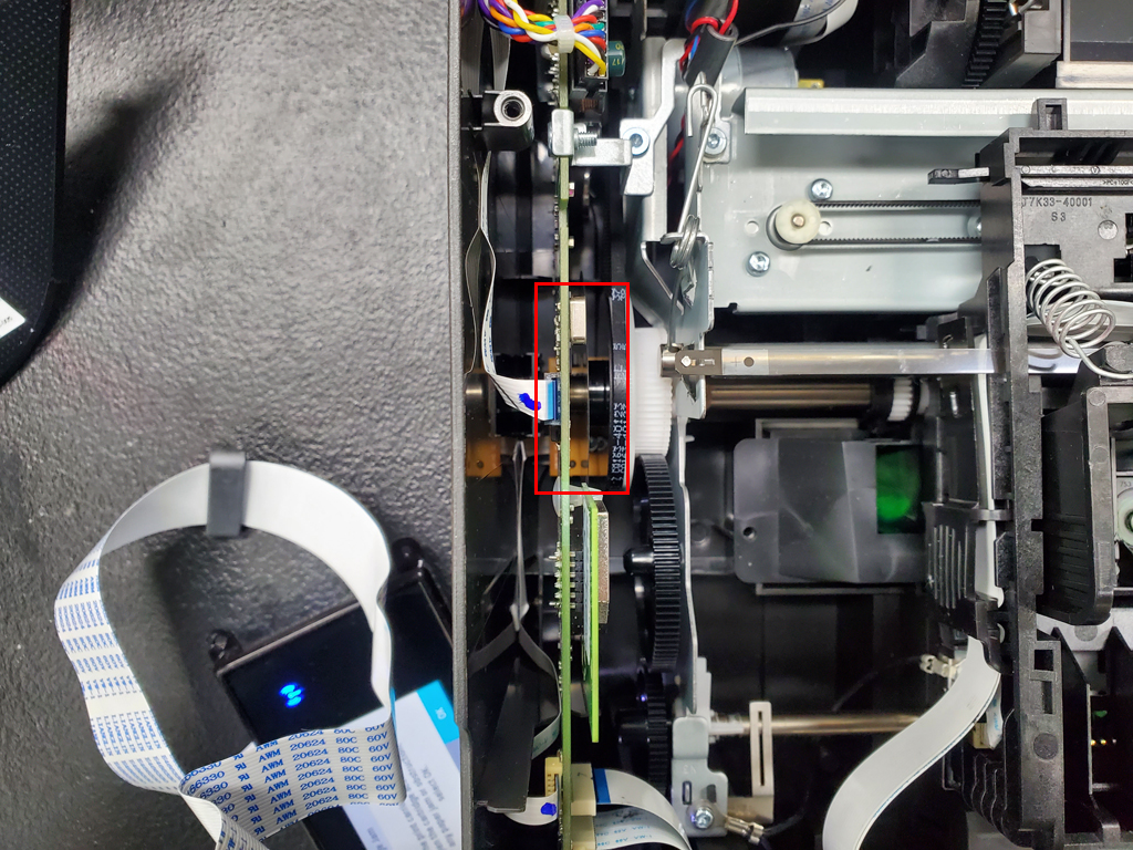 엔코더 센서 불량으로 인해 용지걸림이 나타나는 경우도 있습니다.