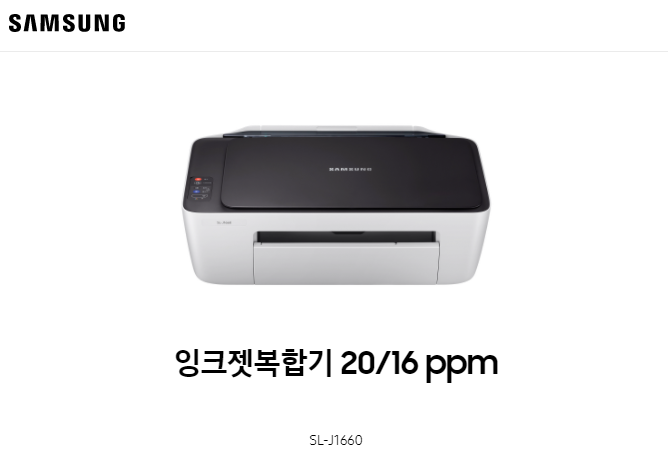 삼성전자 SL-J1660 잉크젯 복합기의 사용자 매뉴얼 및 프린터 드라이버, 스캔 드라이버 파일입니다.