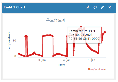 당연 ThingSpeak 에서 그래프로 확인가능합니다. ^^