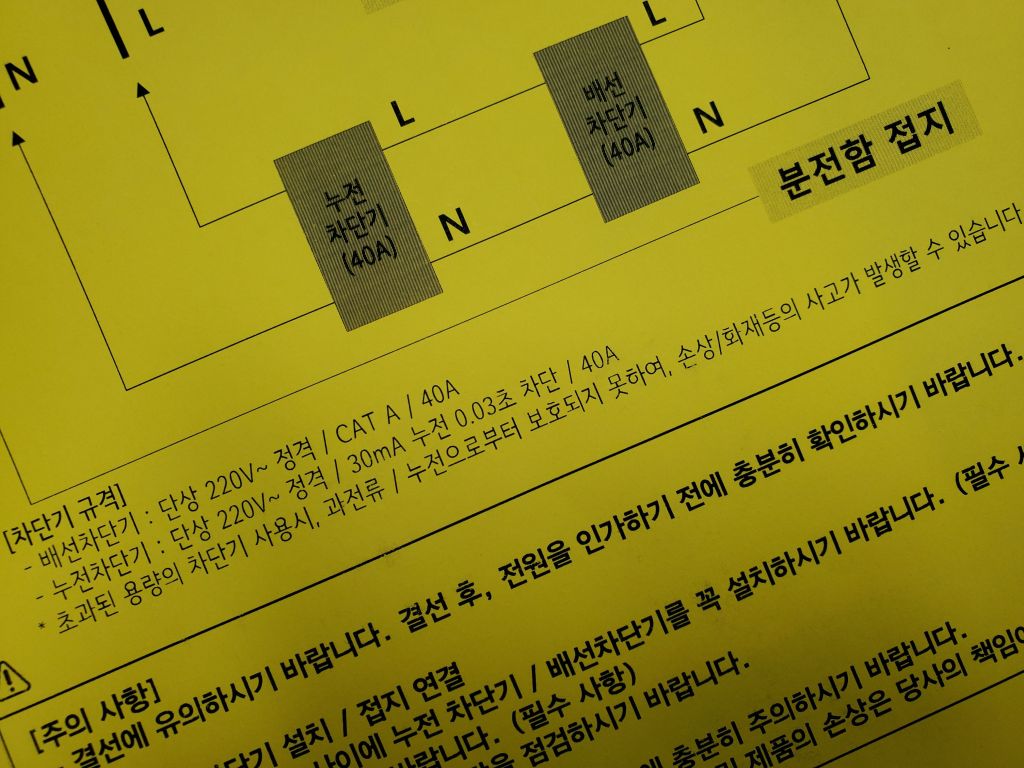 배선차단기 및 누전차단기가 40A급으로 필요하네요.