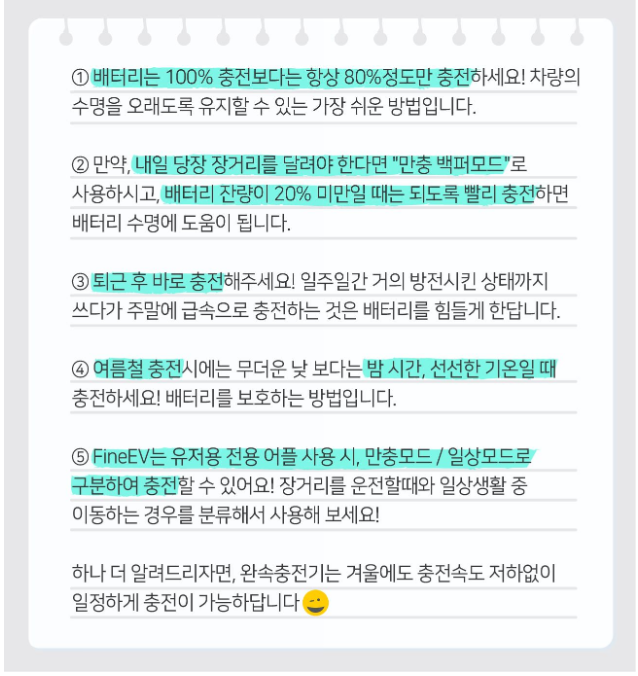 여름철에는 2Kw 급 충전기로 여유있게 충전을 하고