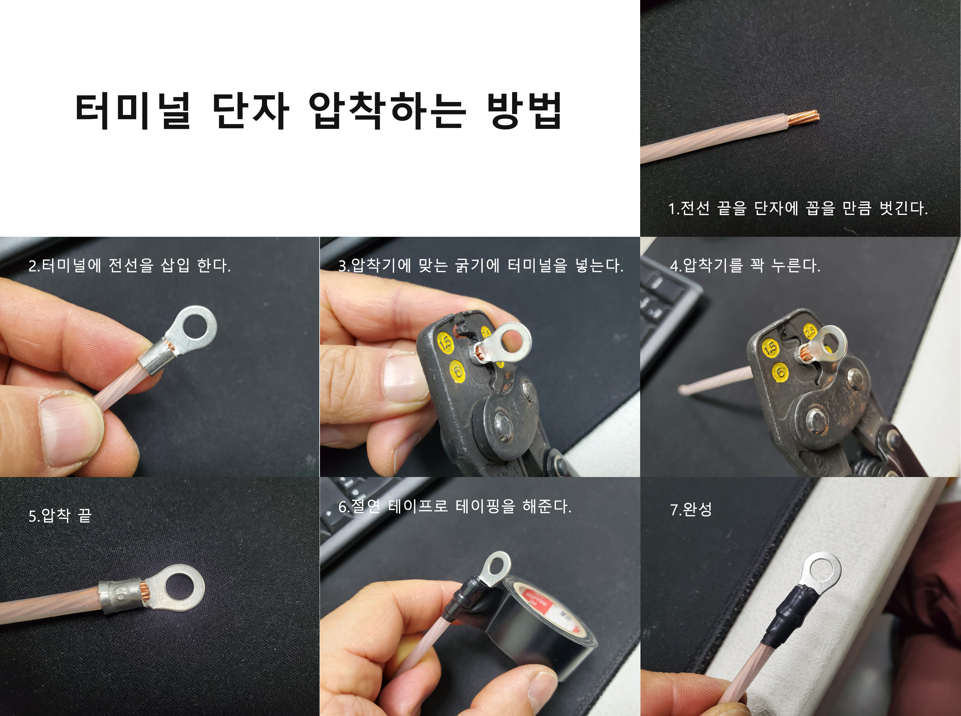 아래 사진은 터미널 압착하는 순서를 만들어 보았습니다.