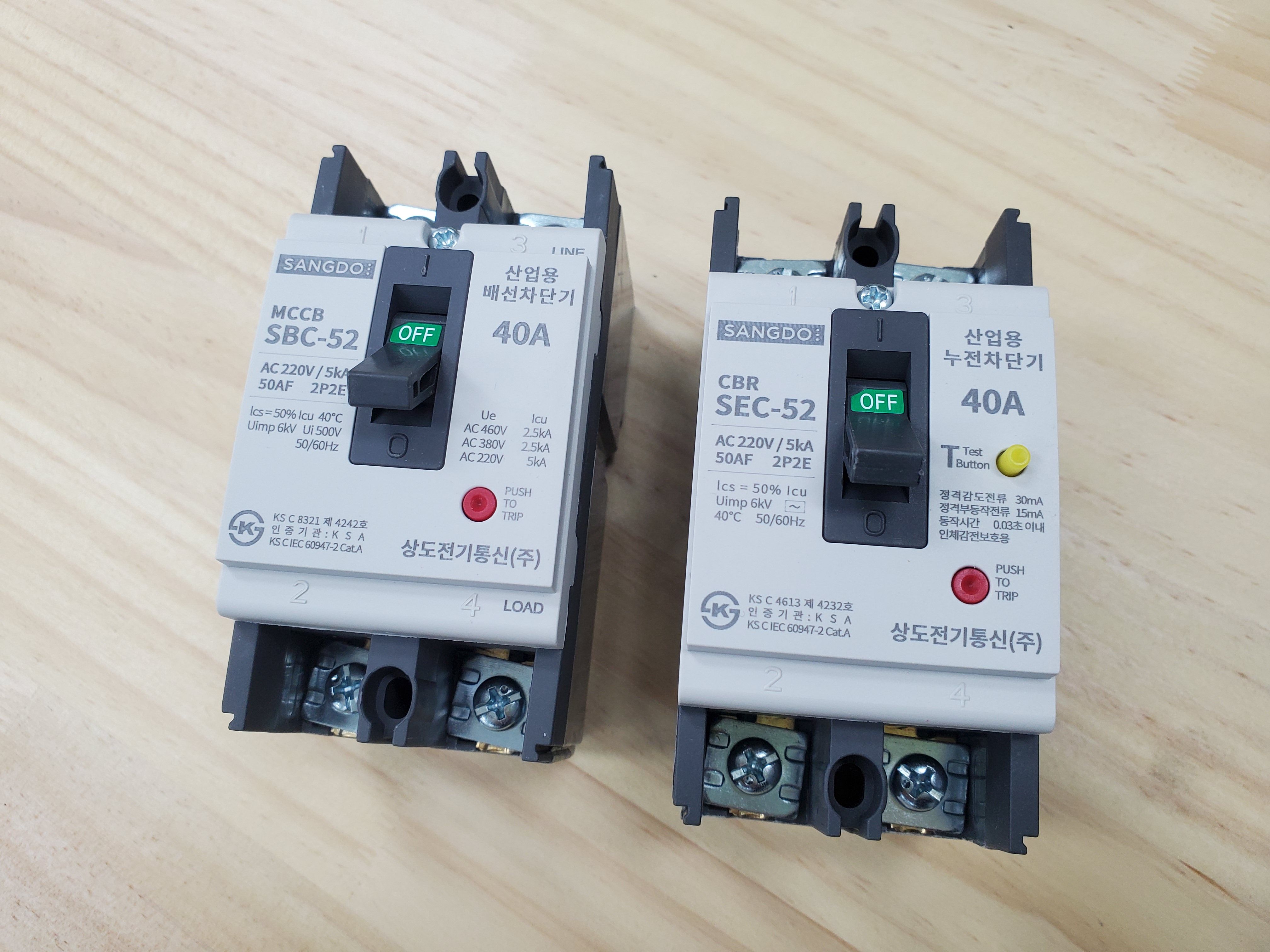 배선차단기는 (산업용) SBC-52 2P / 정격 전류: 40A