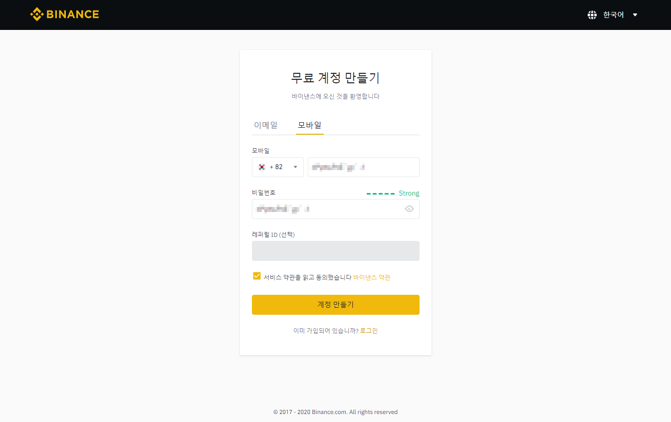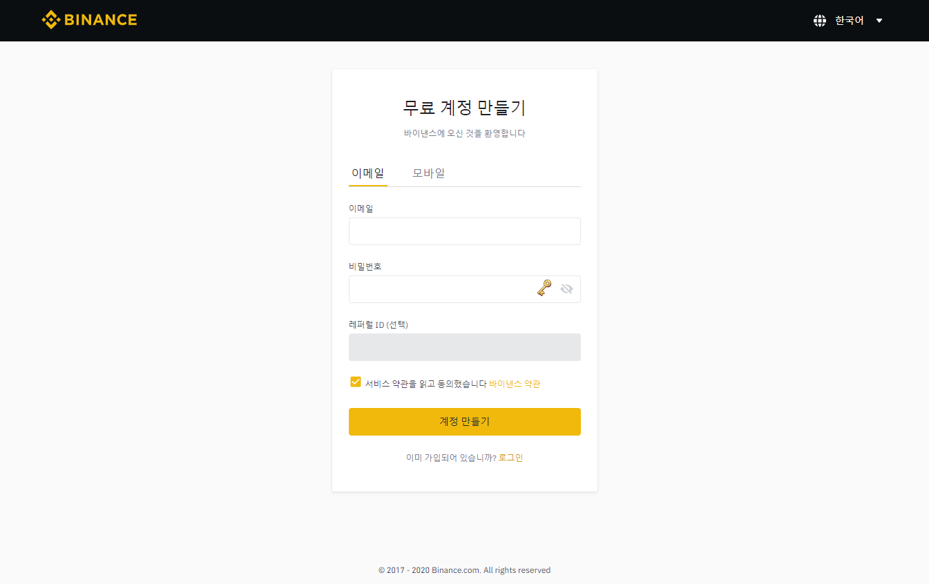 바이낸스(바이넌스) 회원 가입방법입니다.