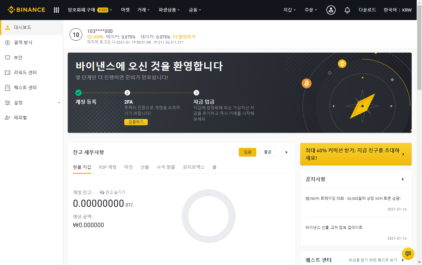 바이낸스 가입하기 | 혜택 : 거래수수료 할인 적용