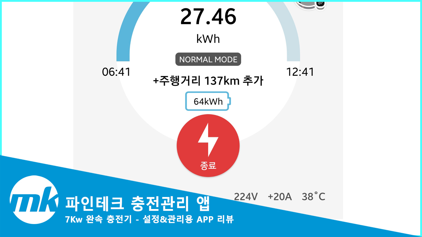 파인테크 완속충전기를 사용한지 일주일이 다 되어가고 있습니다.
