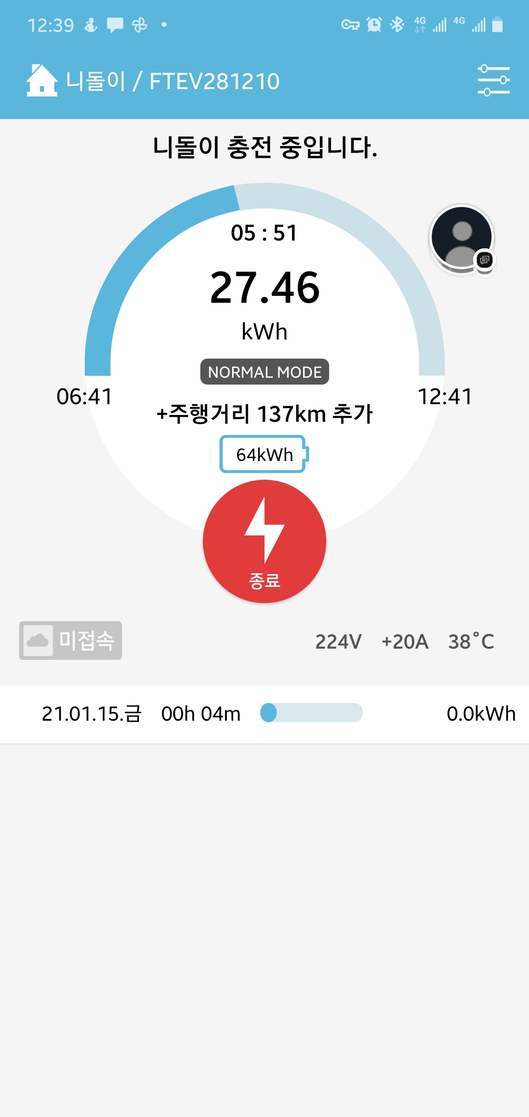 급한일 없을 경우에는 20A로 충전하면 4.4Kw로 충전이 되고