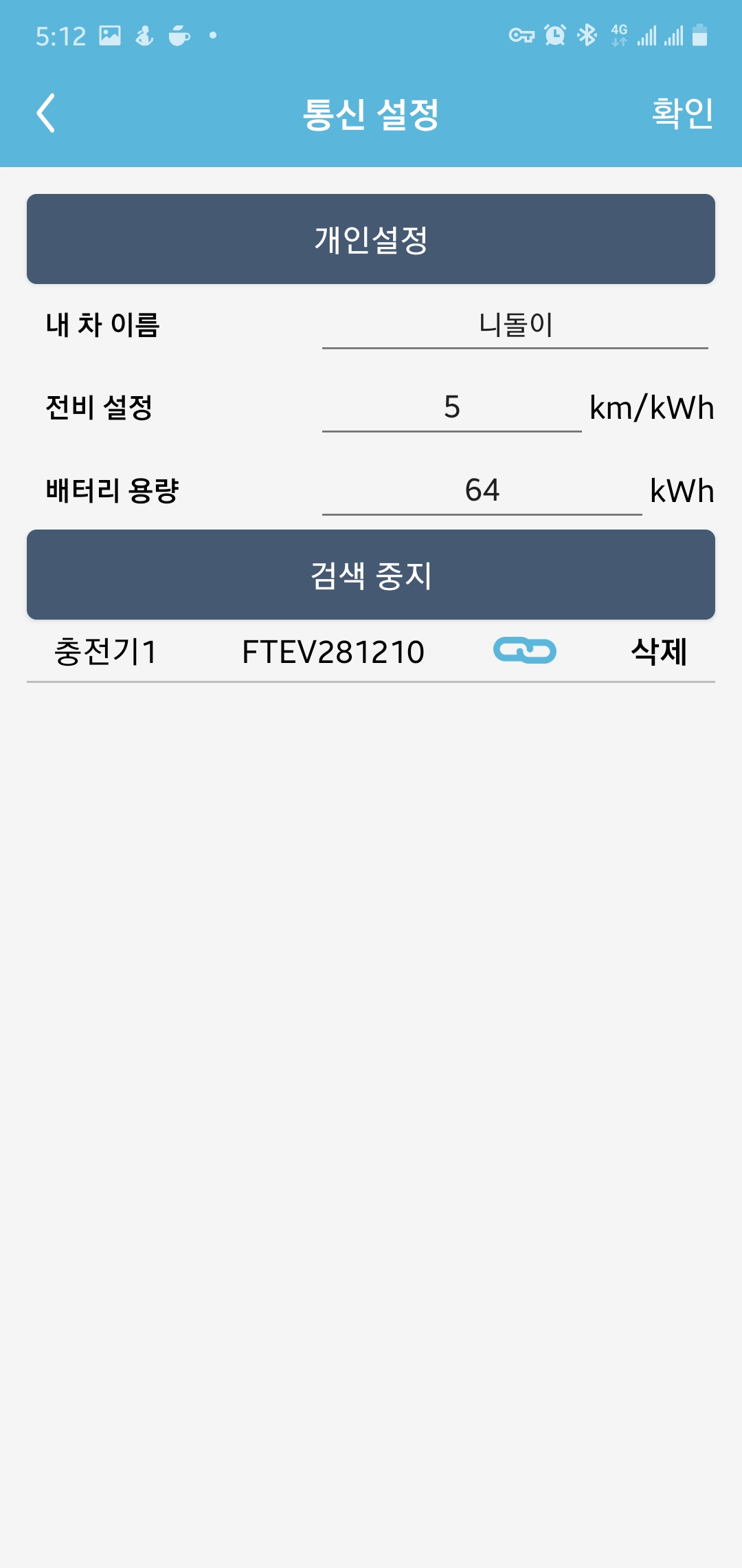 충전기를 검색하여 연결한 화면입니다. ^^