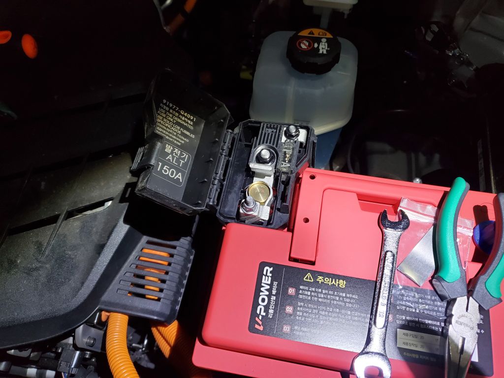 니로EV에 장착되어 있는 순정 납산배터리입니다.