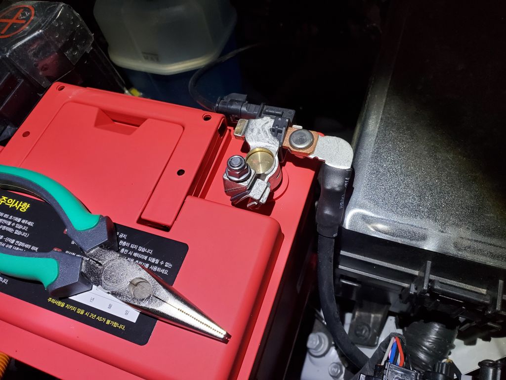 배터리에 단자를 연결할 떄는 플러스 전극부터 먼저 연결을 합니다.