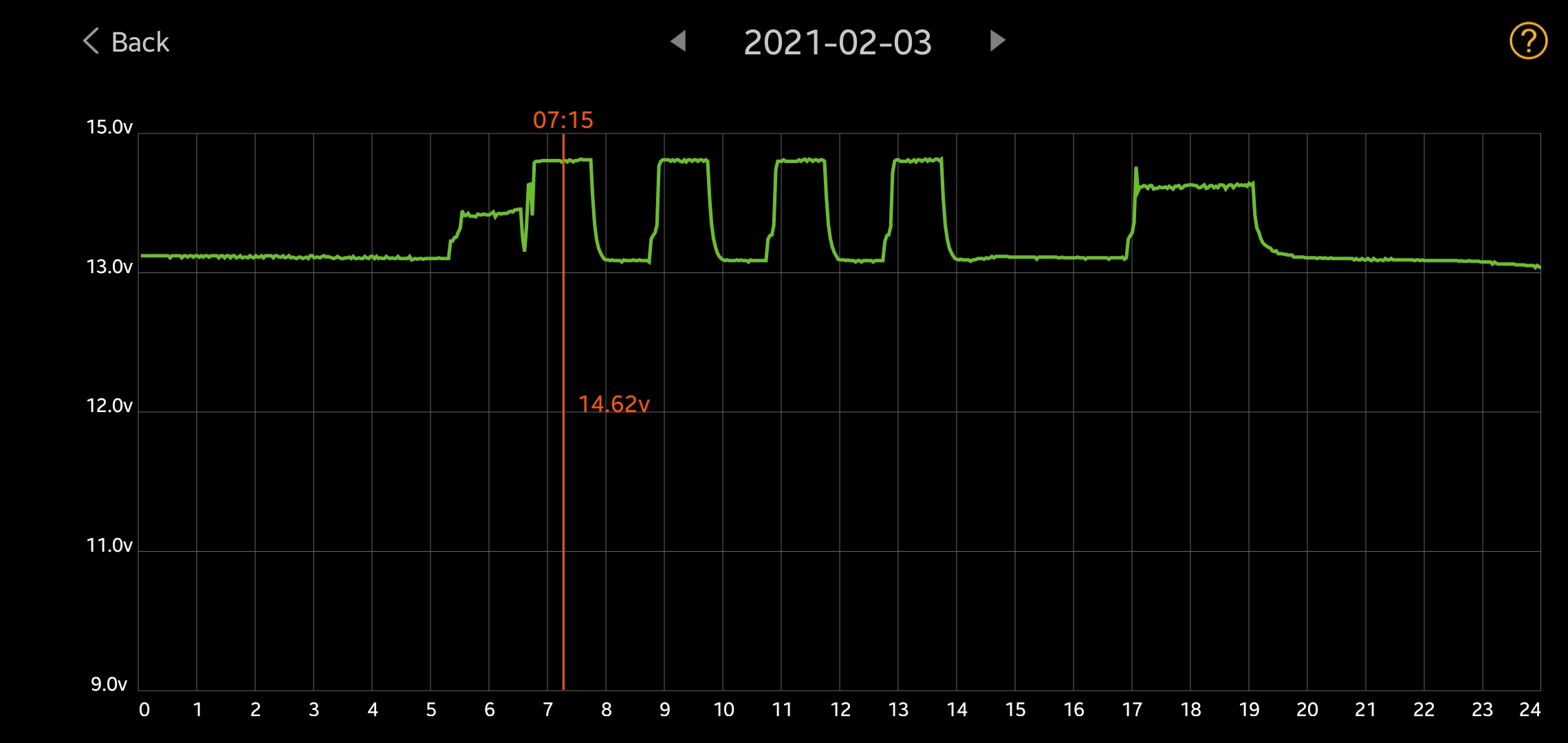 약 2시간 가까이 14.23v 대를 유지하며 충전을 하고 있음을 알 수 있네요.