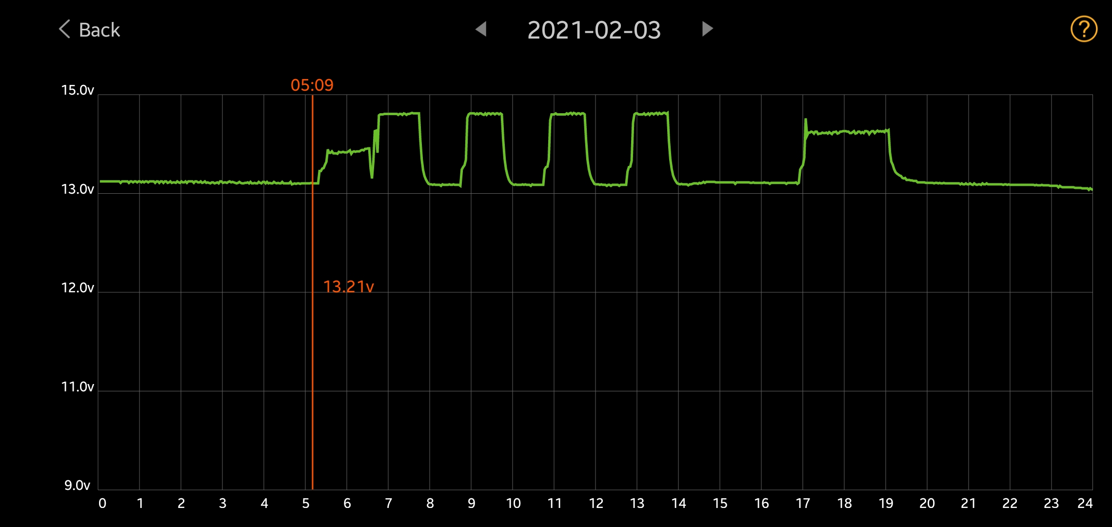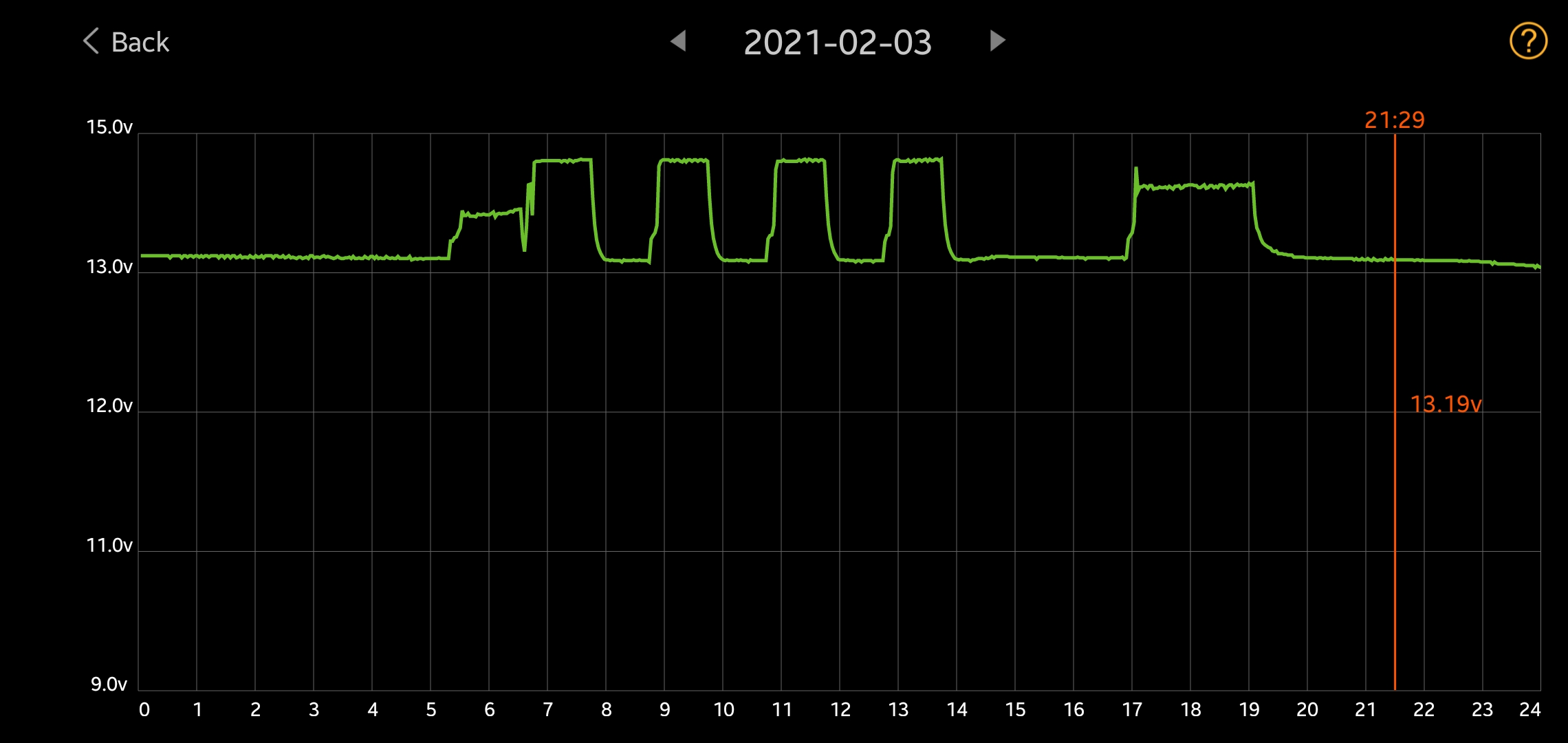 한 밤중 9시반경에 13.19v 를 기록하고 있습니다. ^^
