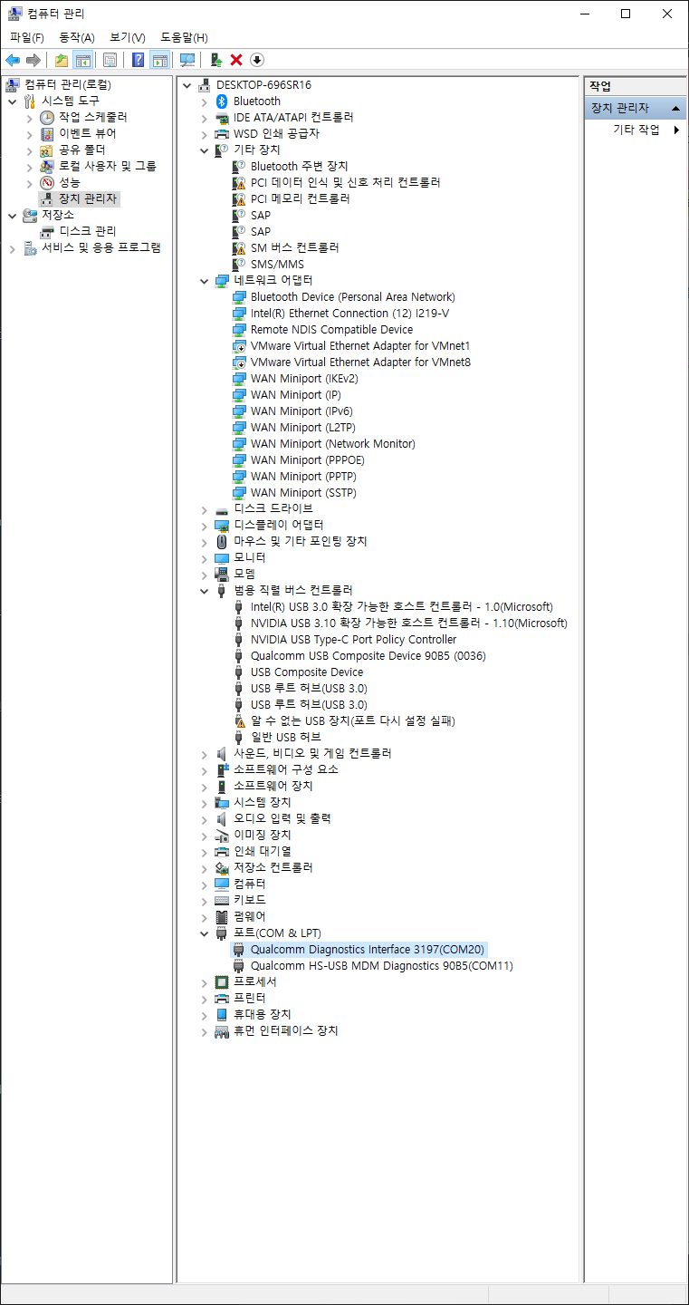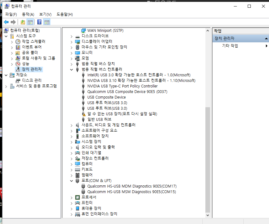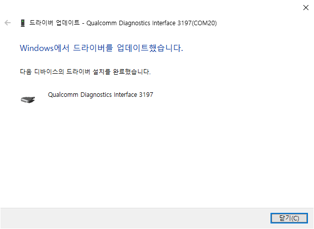 저 위 QCN 백업을 하기 위해 포트를 열때는 자동으로 드라이버를 설치했지만