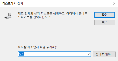 아래처럼 제조사를 수동으로 선택하고 드라이버를 잡아 줍니다.