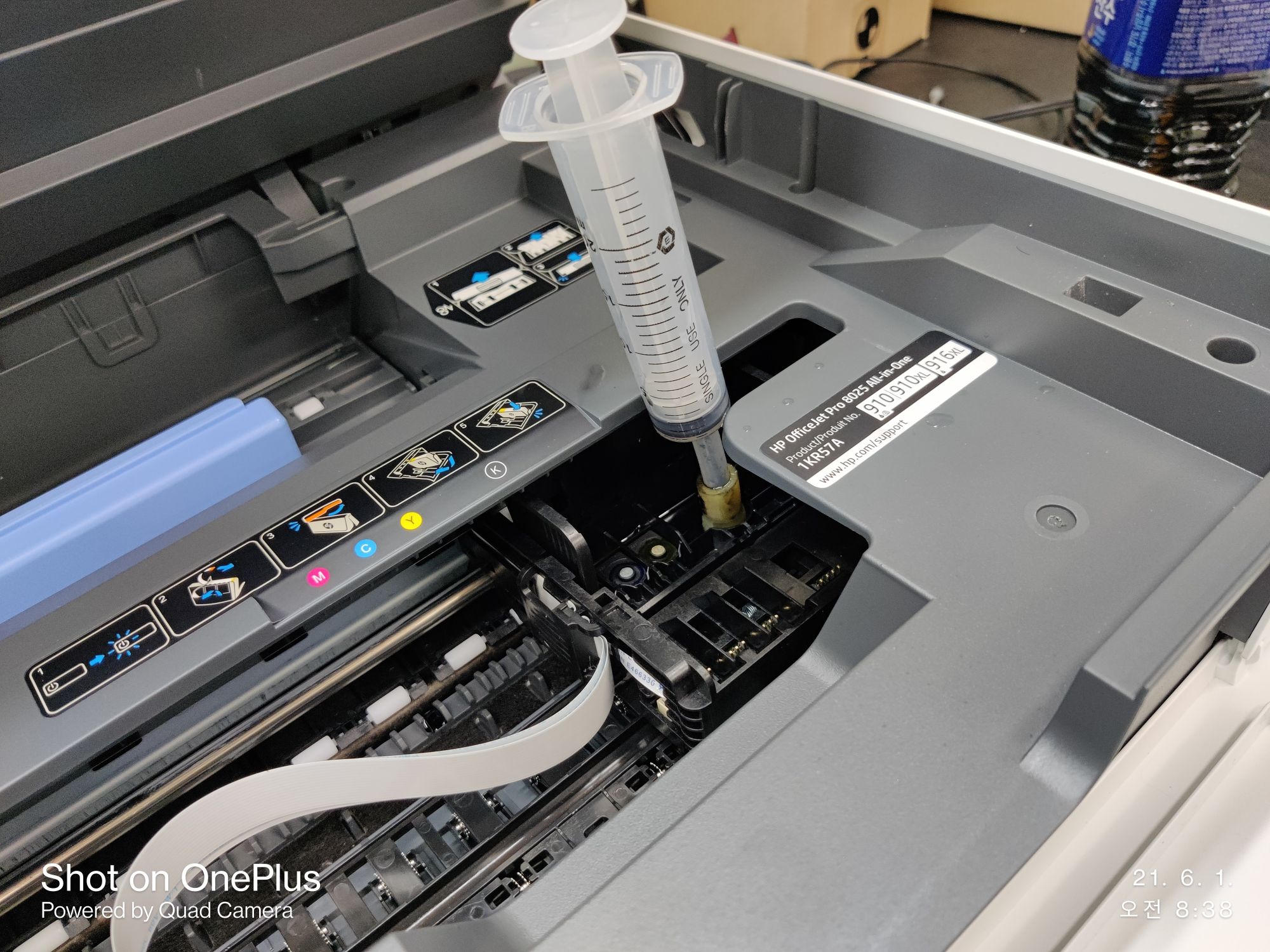 아침에 출근하여 헤드청소 돌려보니 붉은 색은 완벽히 뚫렸는데