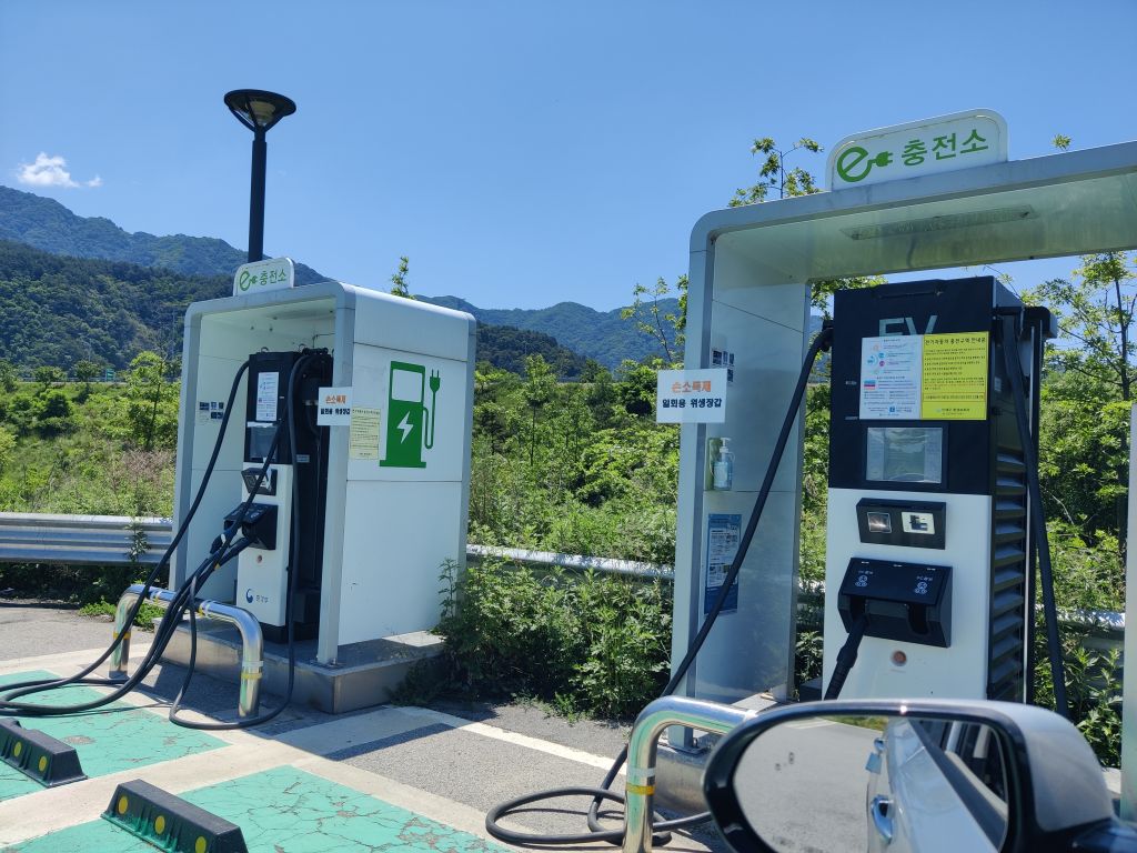 목적지까지는 전기가 충분 했지만 중간에 들린 내린천휴게소...
