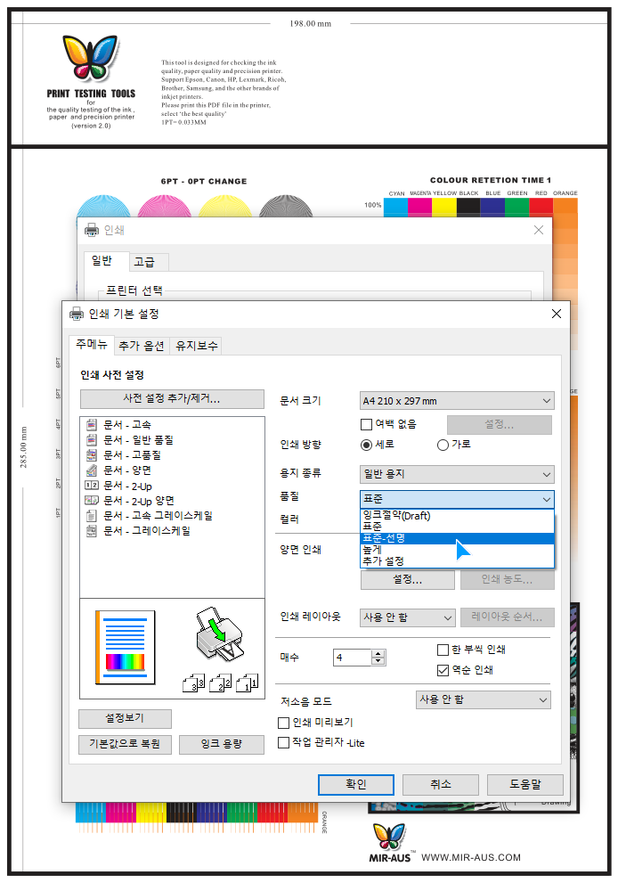 일반 표준모드보다 좀 더 나은 인쇄 품질을 보여주는