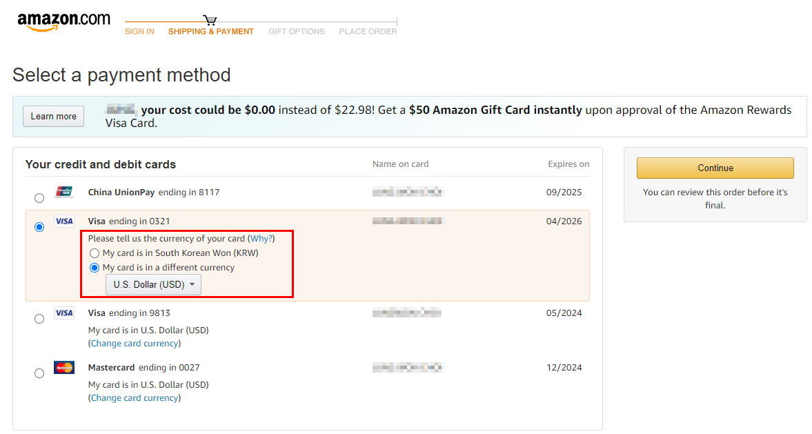 아마존이 원화결제시 발생되는 수수료를 먹고자 달러 결제를 없앴나 ????