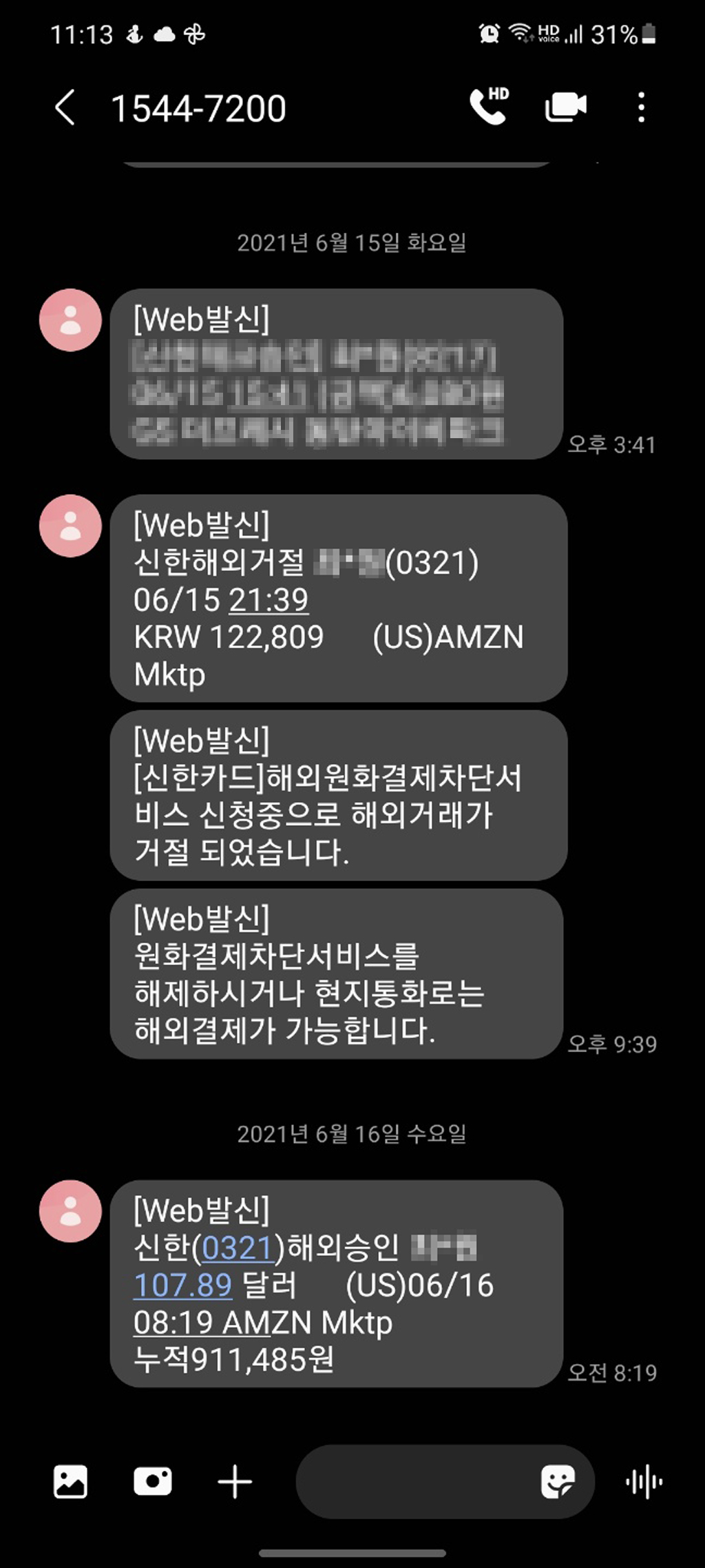 카드결제가 실패되었다는 문자가 다행스럽게 날아 왔네요. ㅋㅋ