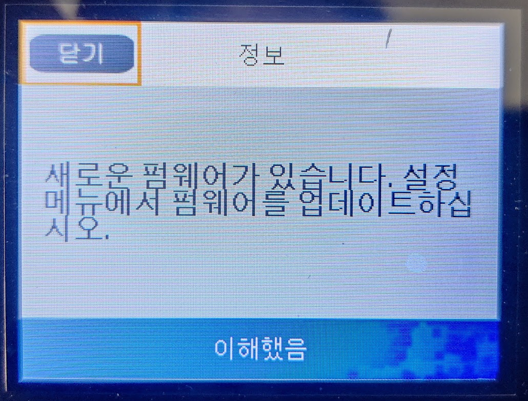 일단, WF-2850 Series 프린터는 와이파이에 딱~ 연결되면 잠시 후 메세지를 내보냅니다.
