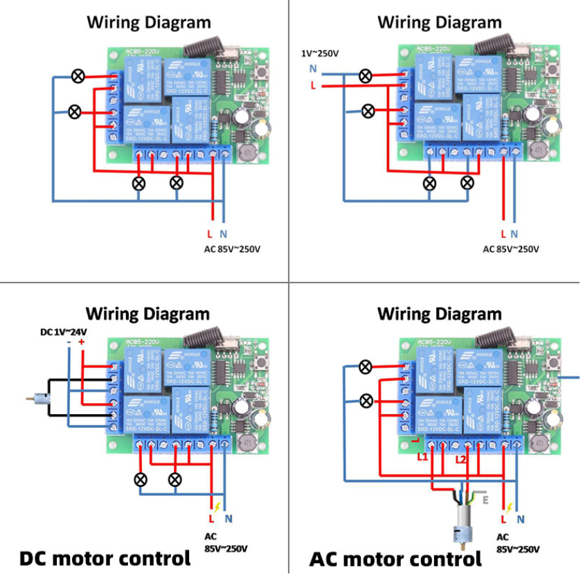 - 1. 순간 모드: "A" 버튼을 길게 누르면 릴레이가 켜집니다. 버튼을 놓으면 이 릴레이가 꺼집니다.