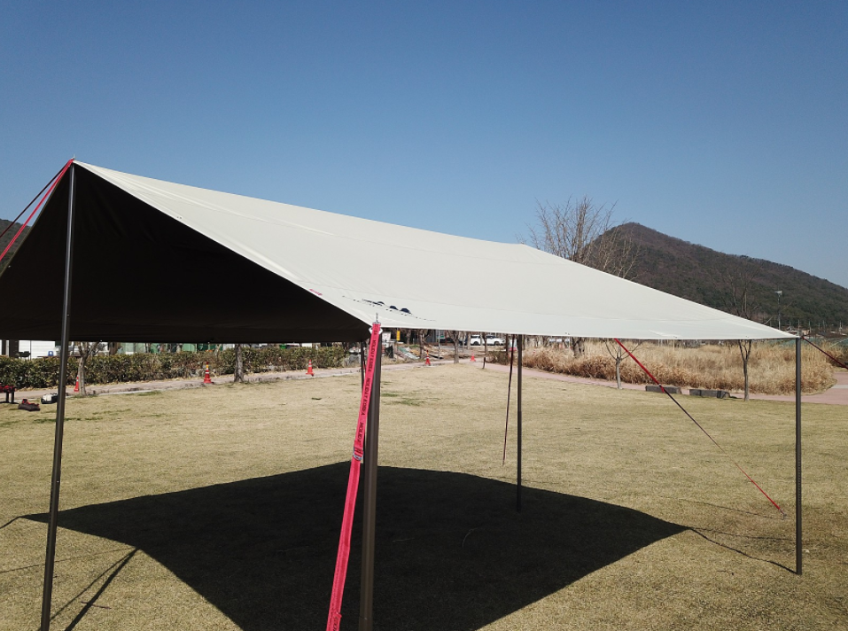 캠핑 시작함과 동시에 뜨거운 햇빛을 차단하기 위해