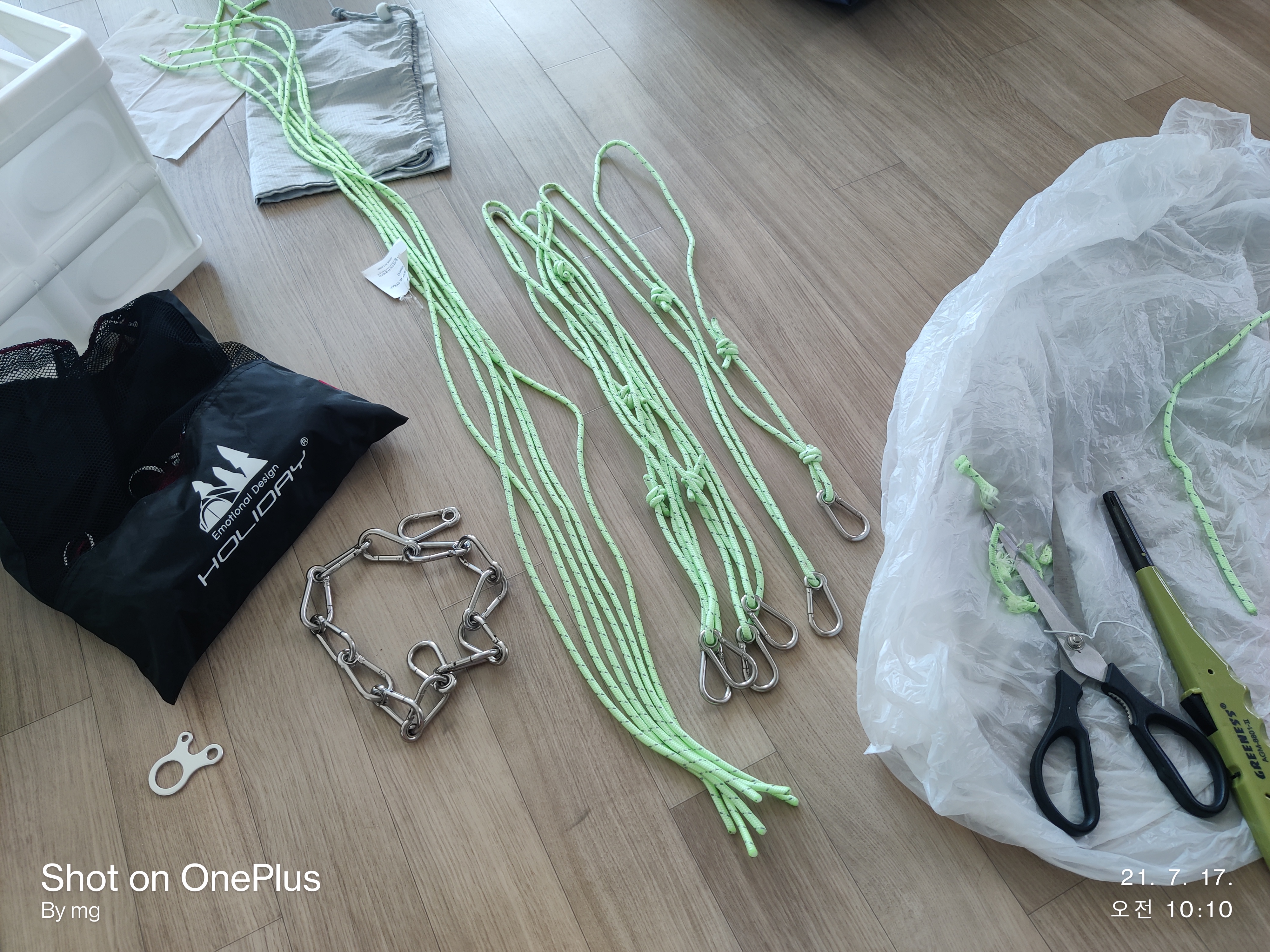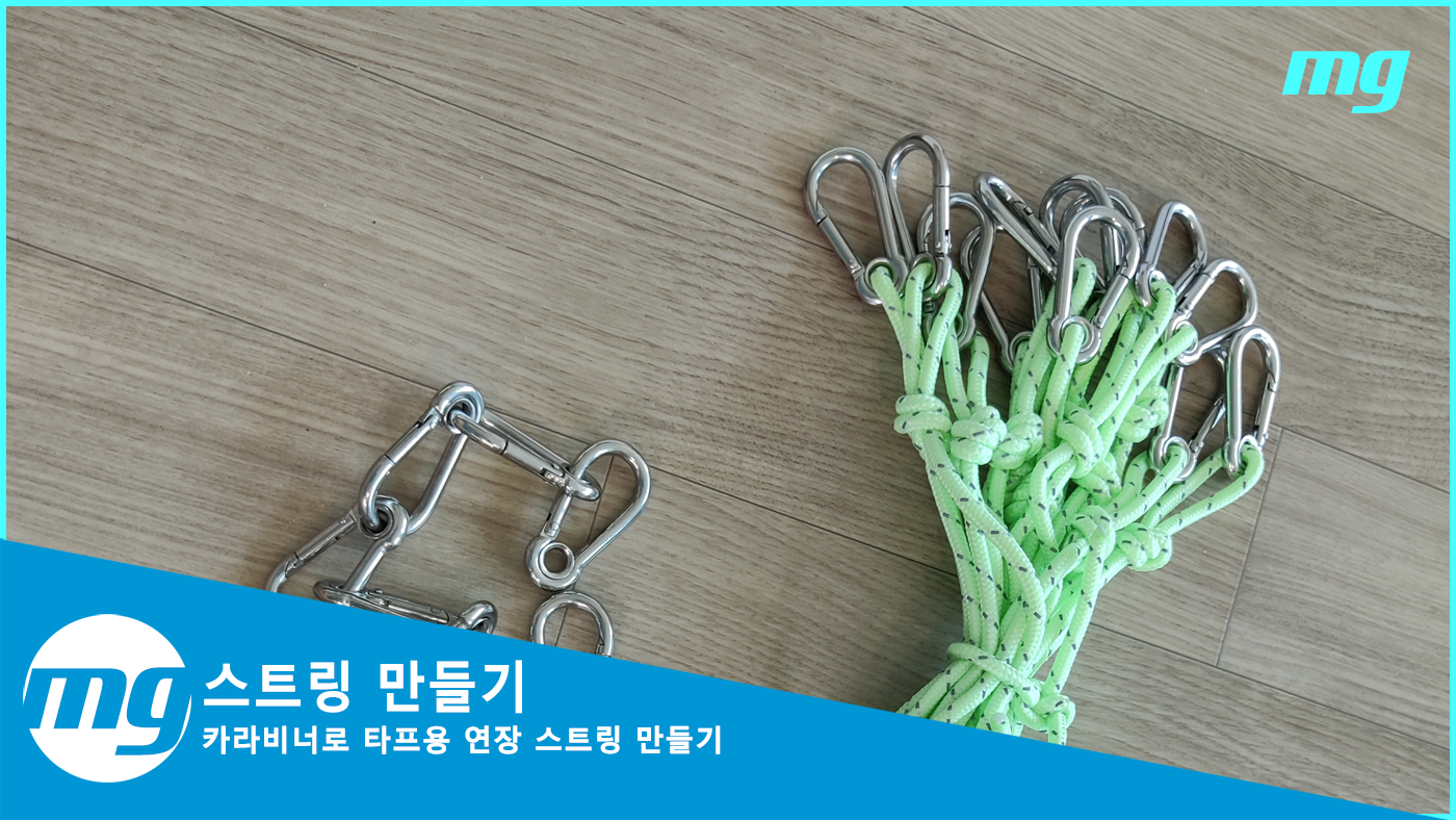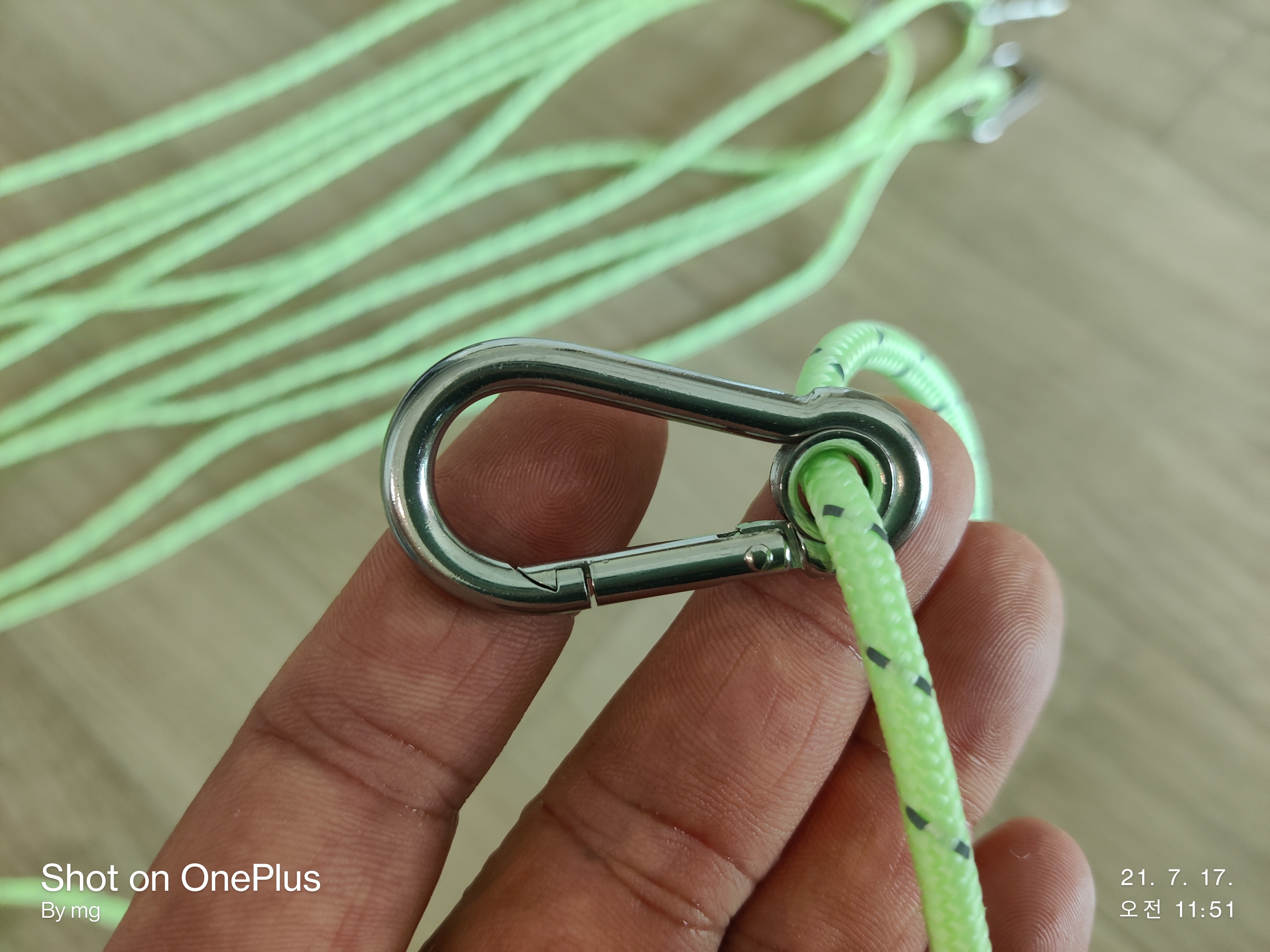 카라비너 쪽에는 고리 옭 매듭을 하여 마무리 하였습니다.