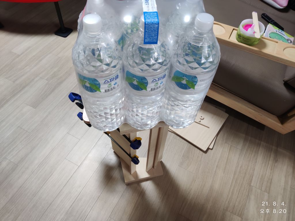 생수로 하룻밤 눌러 뒀습니다.