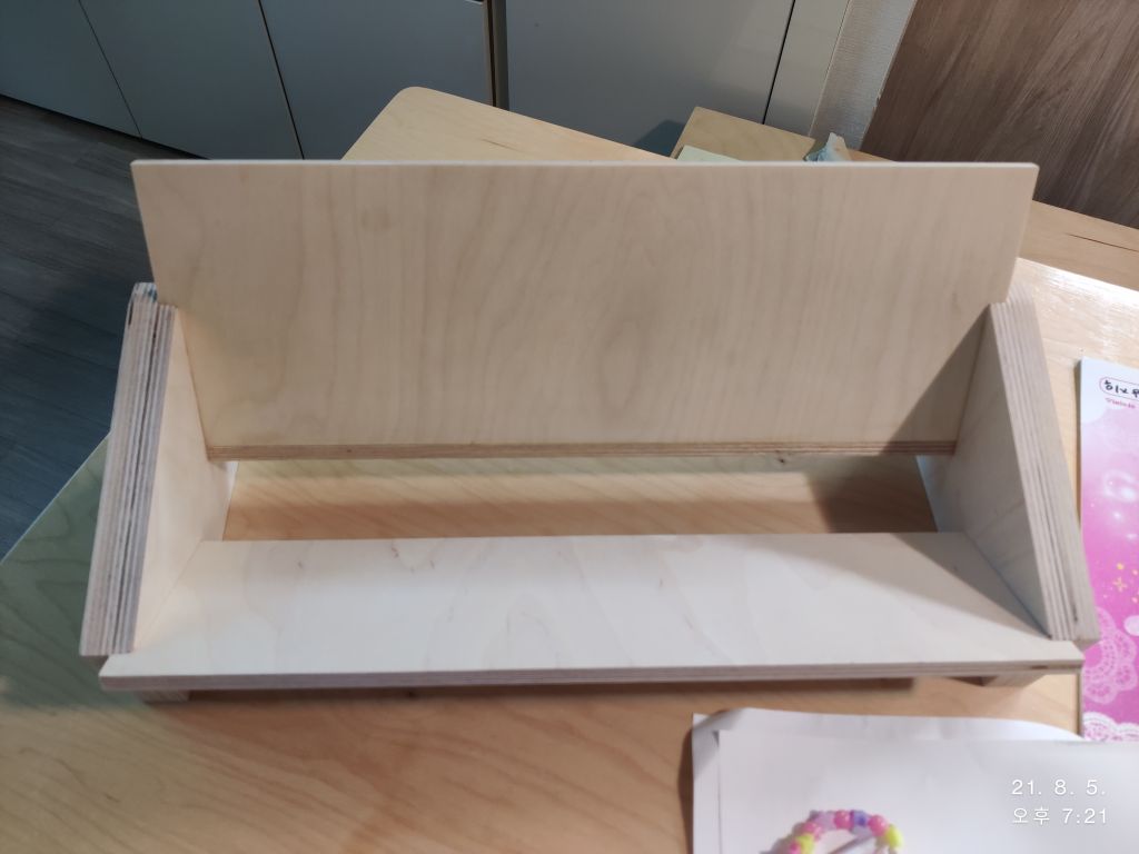 옆 판에 판 홈이 판재 두께보다 0.2mm 더 넓게 팠는데 많이 헐렁하네요.