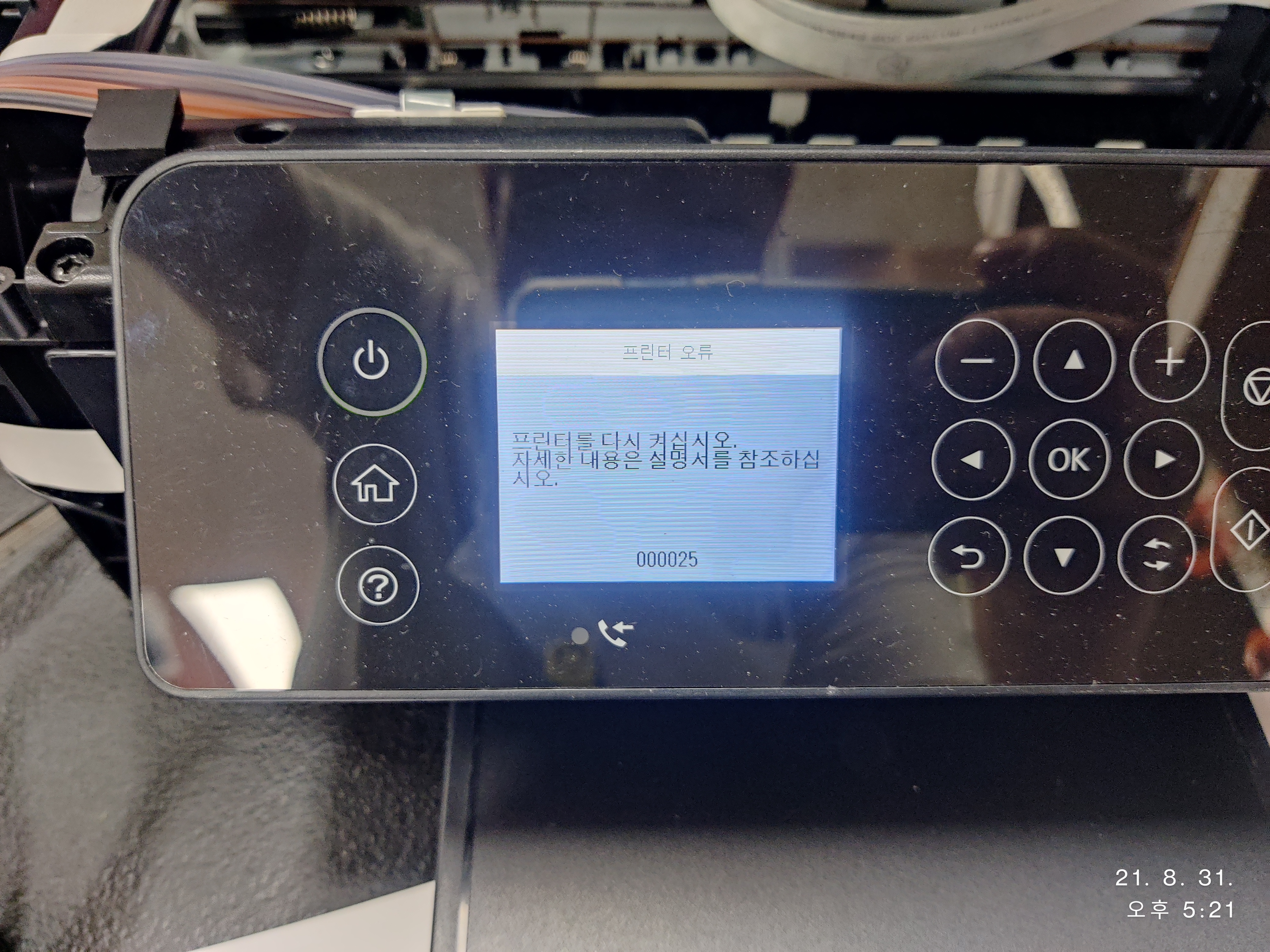 엡손 WF2850, WF2851, WF2860, WF2861 에러 : 000025 해결 방법입니다.