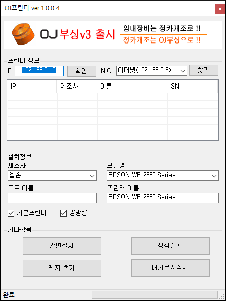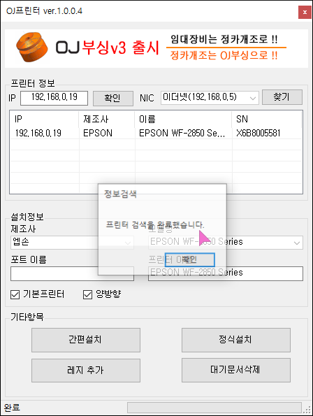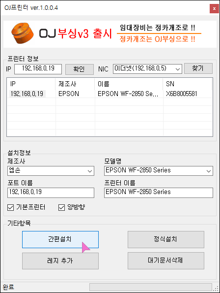 간편하게 프린터 드라이버를 설치하여 프린터를 잡아 주는 프로그램입니다.