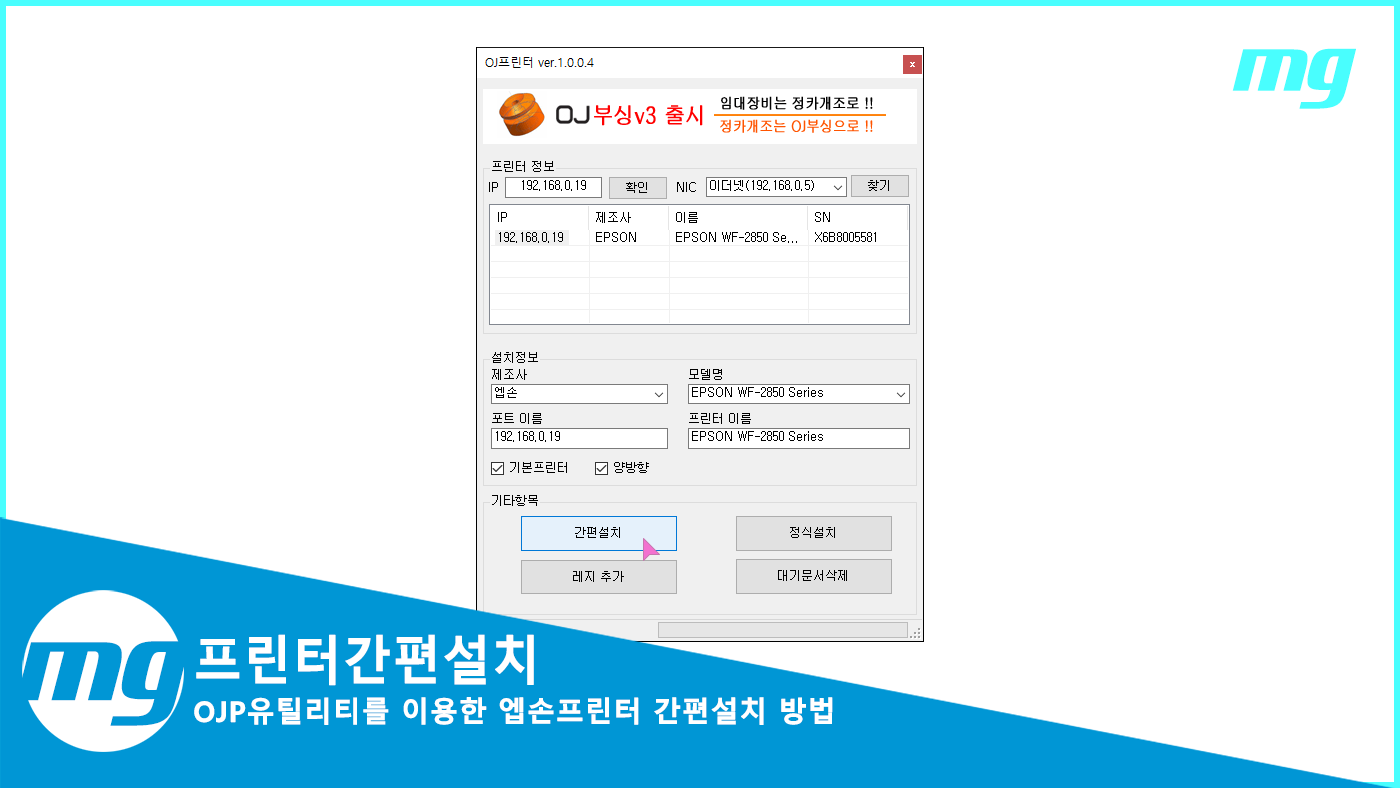 간편하게 프린터 드라이버를 설치하여 프린터를 잡아 주는 프로그램입니다.