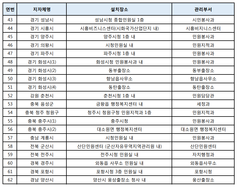 43 경기 성남시 성남시청 종합민원실 1층 시민봉사과