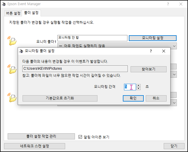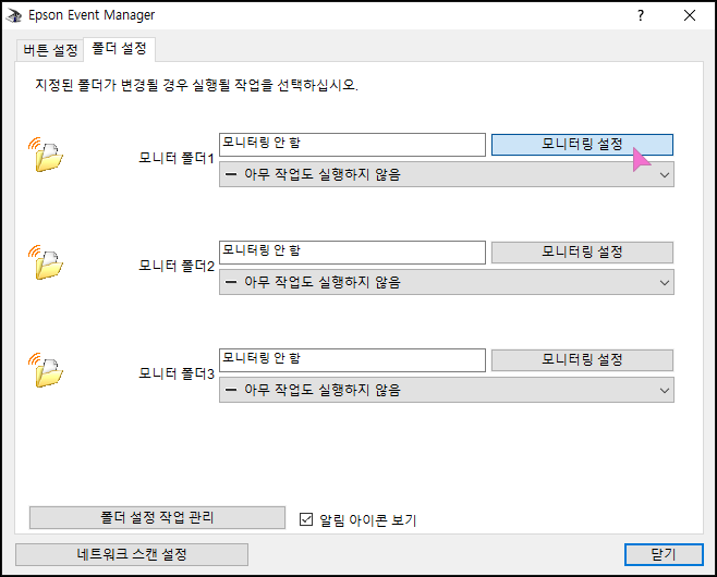 첫번째 폴더의 모니터링 설정을 누릅니다.