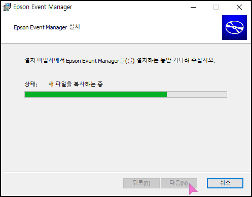 다운 받은 엡손 이벤트 매니저를 설치 프로그램을 실행합니다.