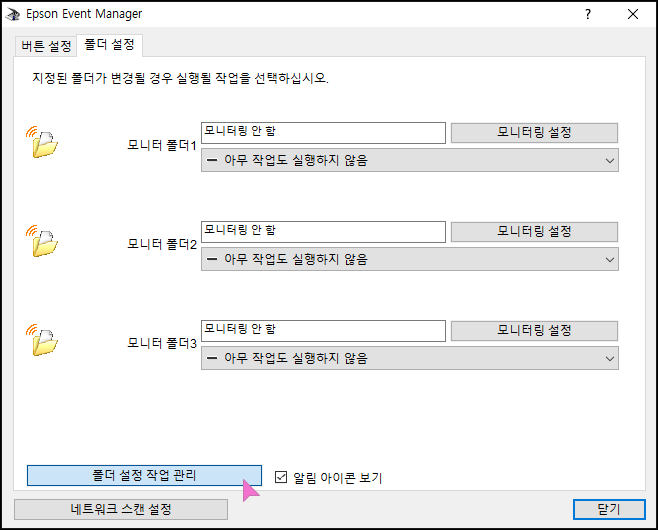 하단의 폴더 설정 작업관리를 누릅니다.