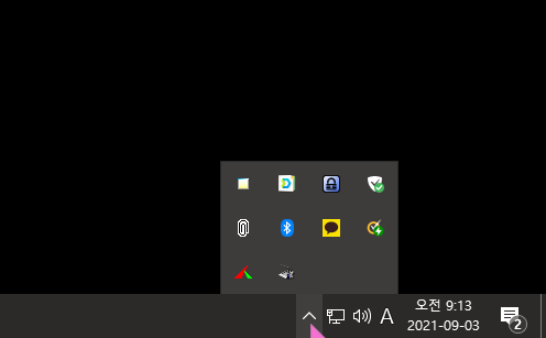 윈도 작업표시줄의 우측 하단의 알림 아이콘을 열어줍니다.