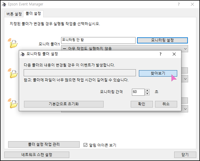 찾아 보기를 눌러 스캔 결과물을 저장 할 폴더를 선택합니다.