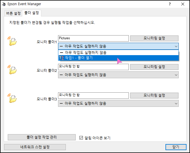 하단의 폴더 설정 작업관리를 누릅니다.