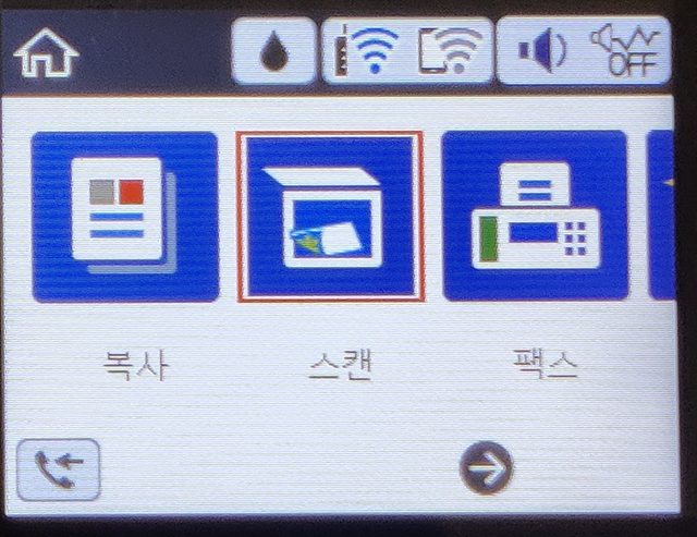 복합기 화면에서 스캔을 누릅니다.