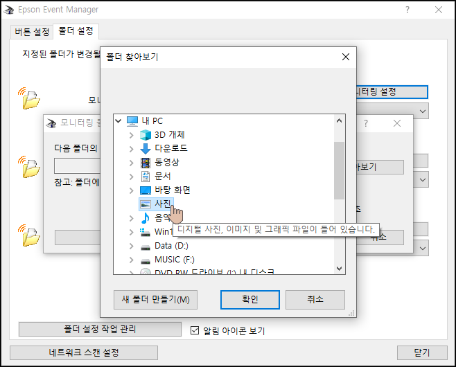 저는 사진 폴더를 선택했습니다.