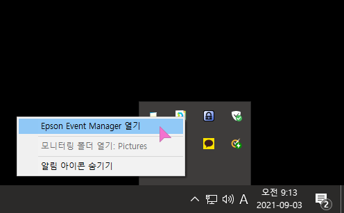 엡손 이벤트 매니저를 열어 줍니다.