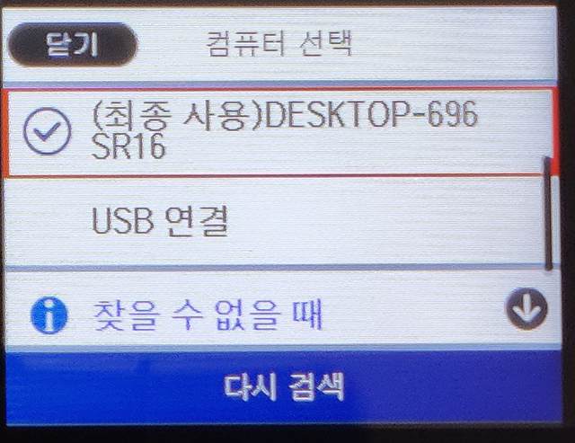 아래 처럼 PC목록과 USB연결이 나오고 선택하게 됩니다.