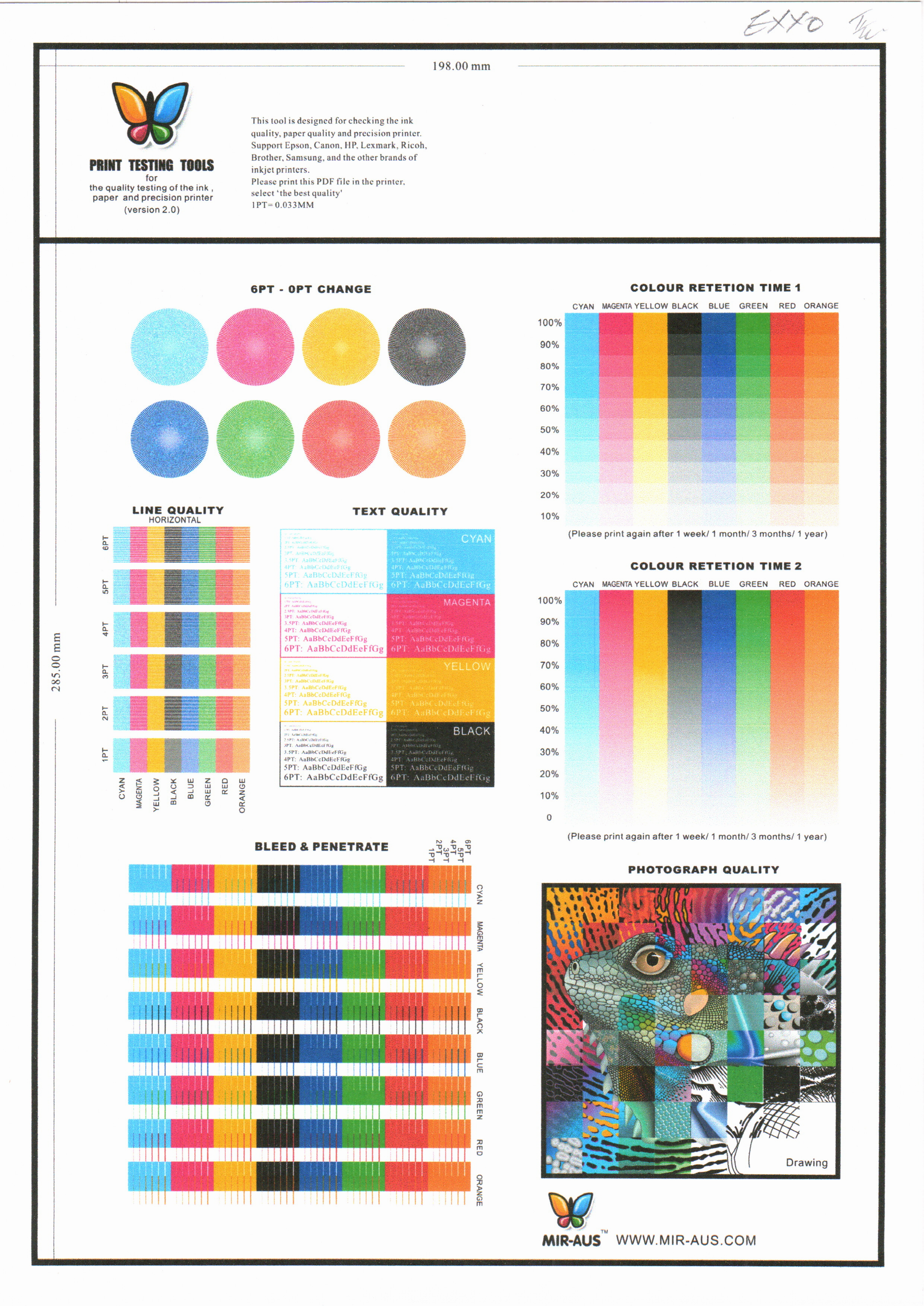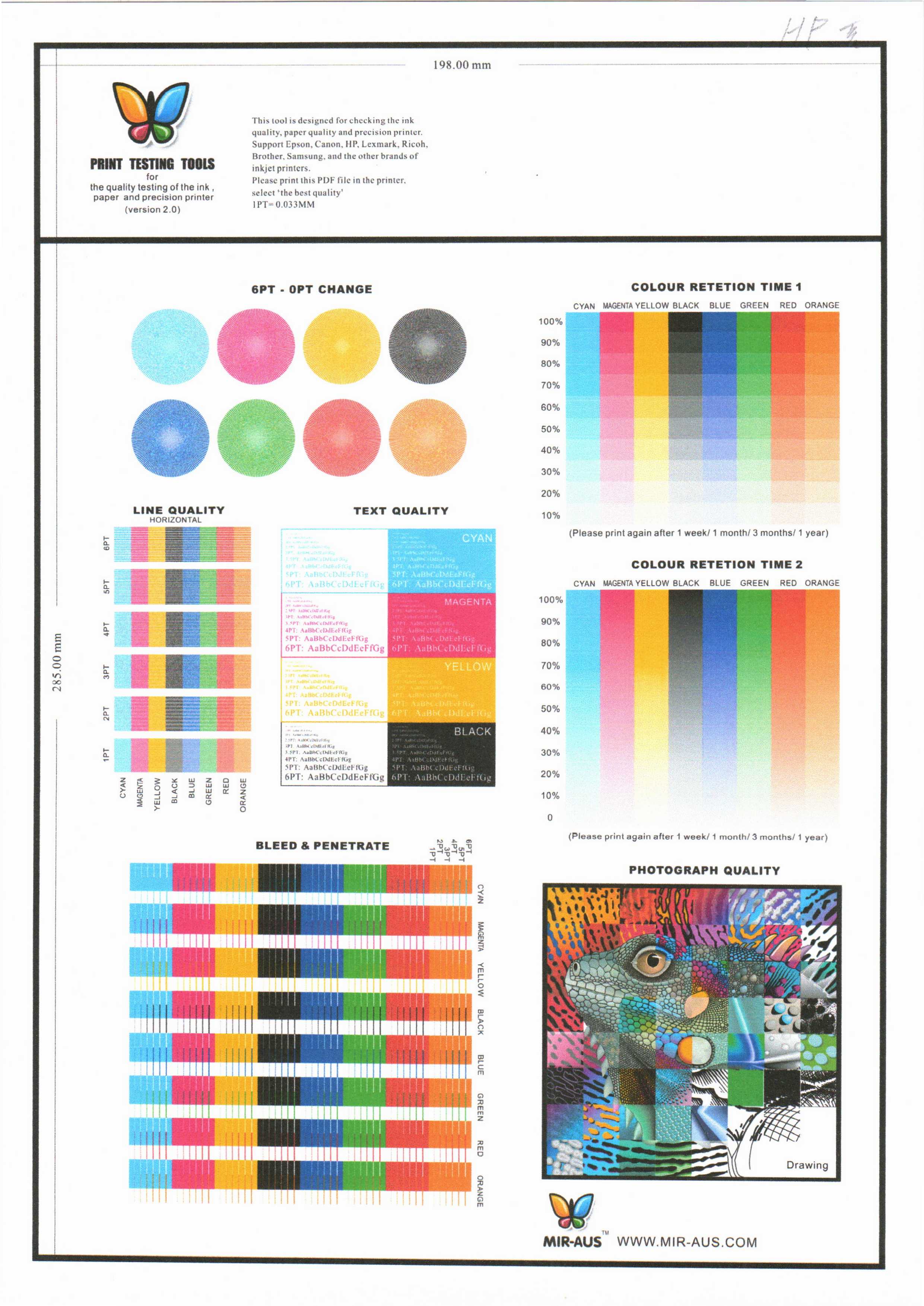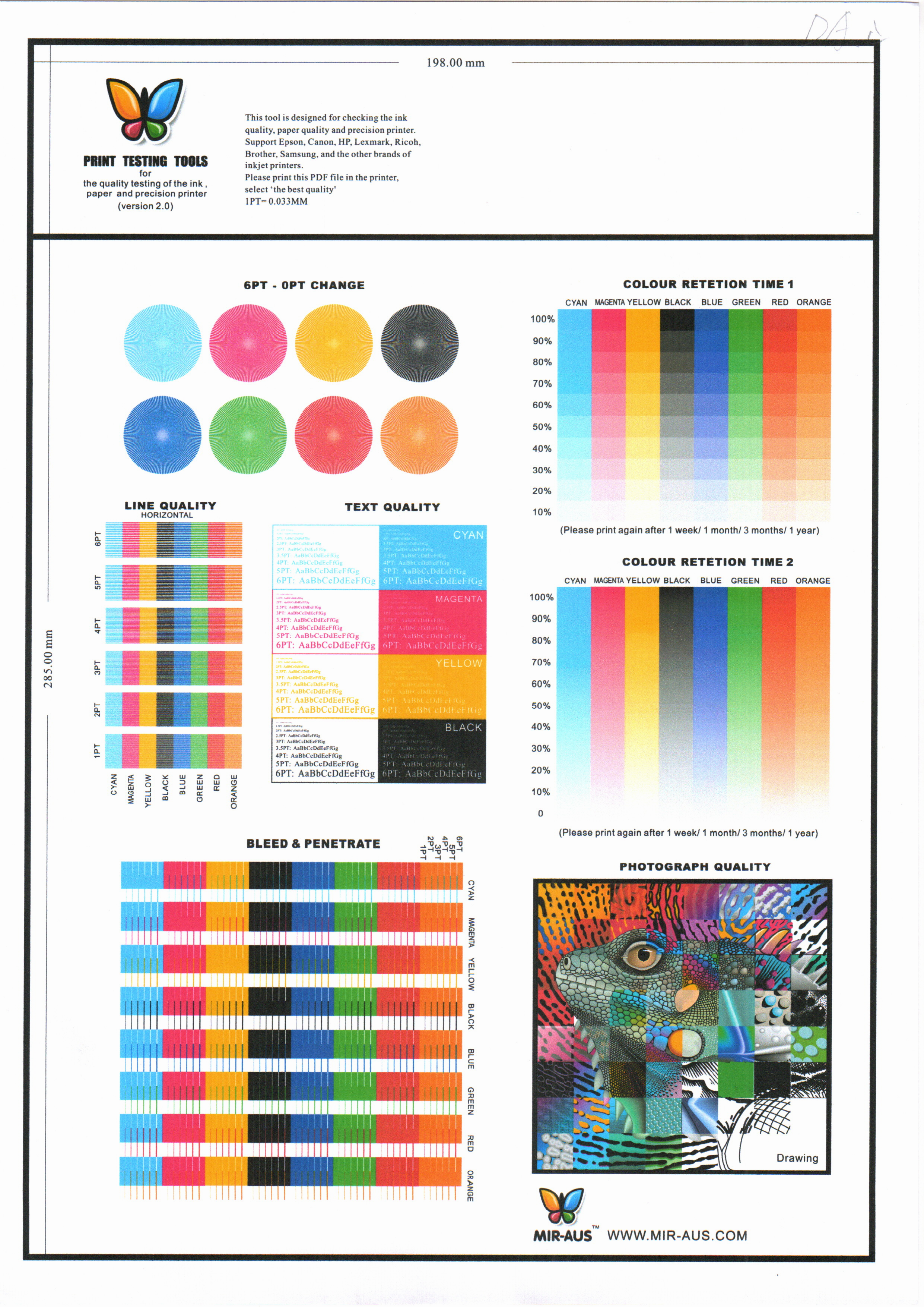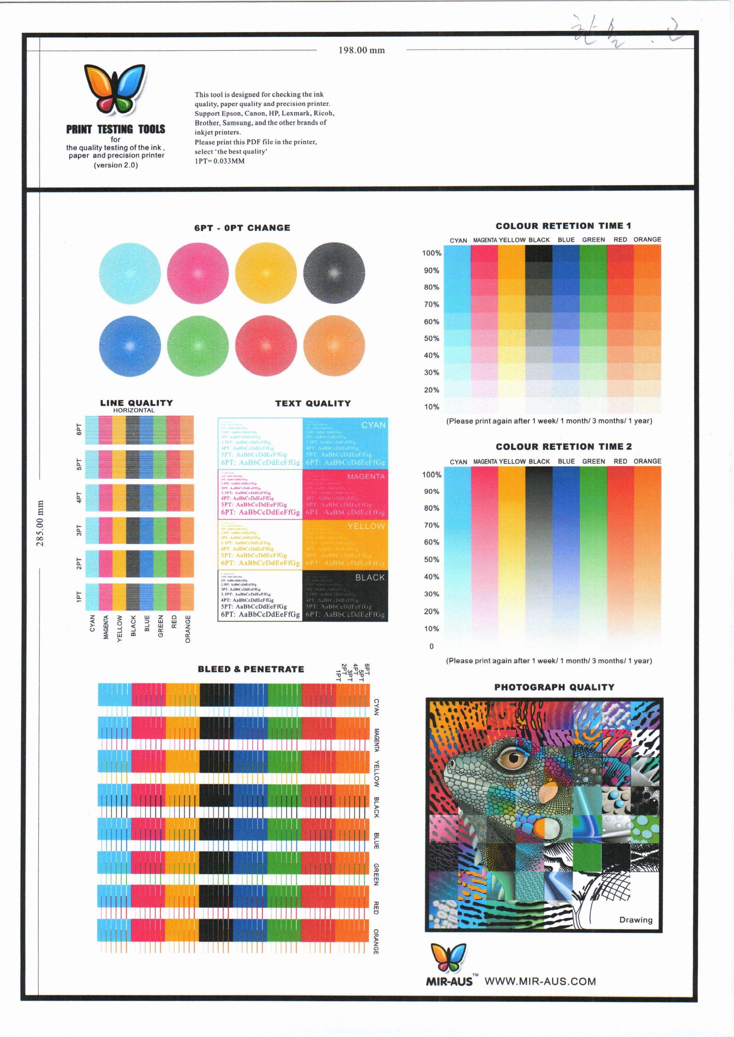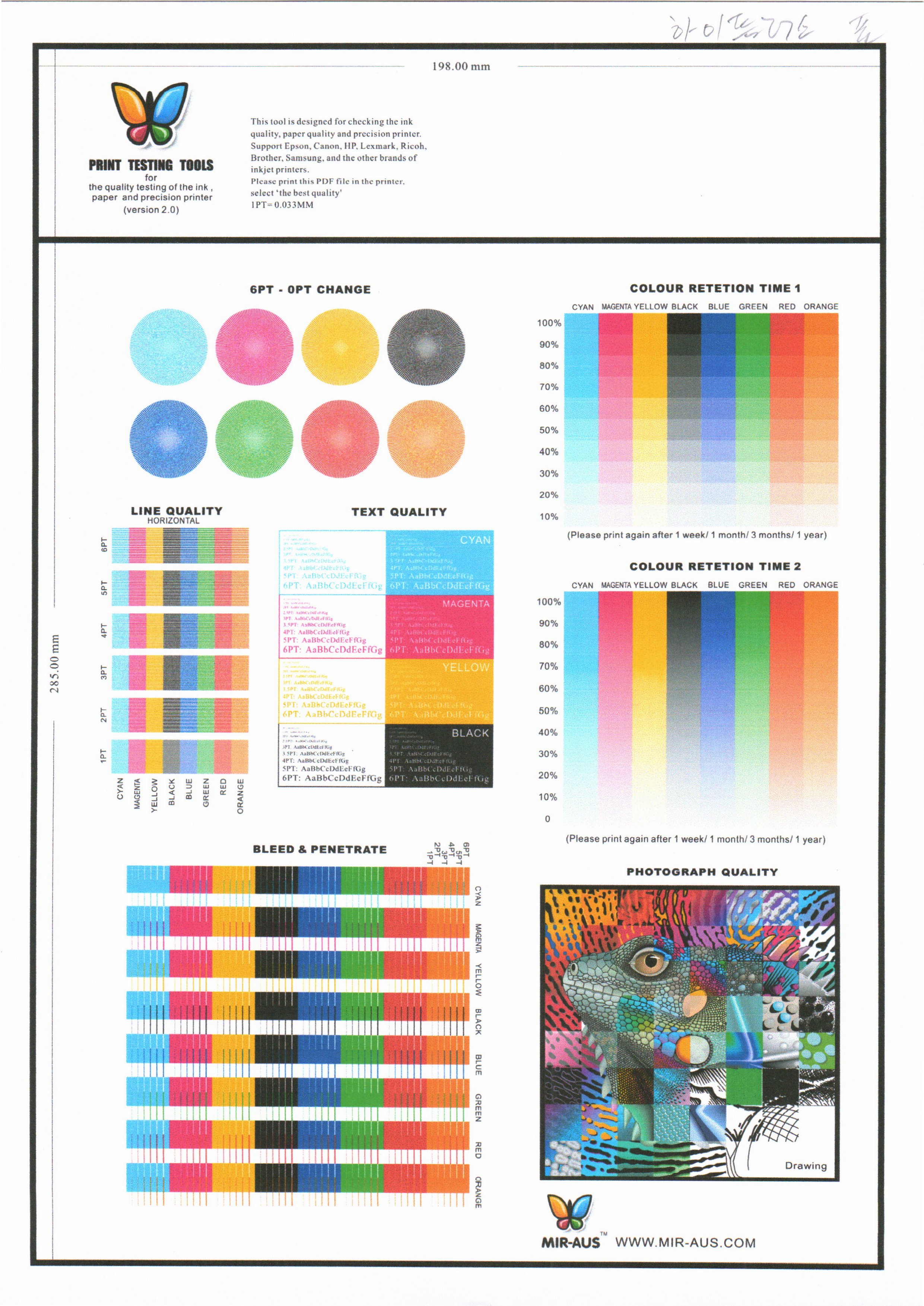 아래 이미지는 표준모드 출력물 비교챠트입니다.