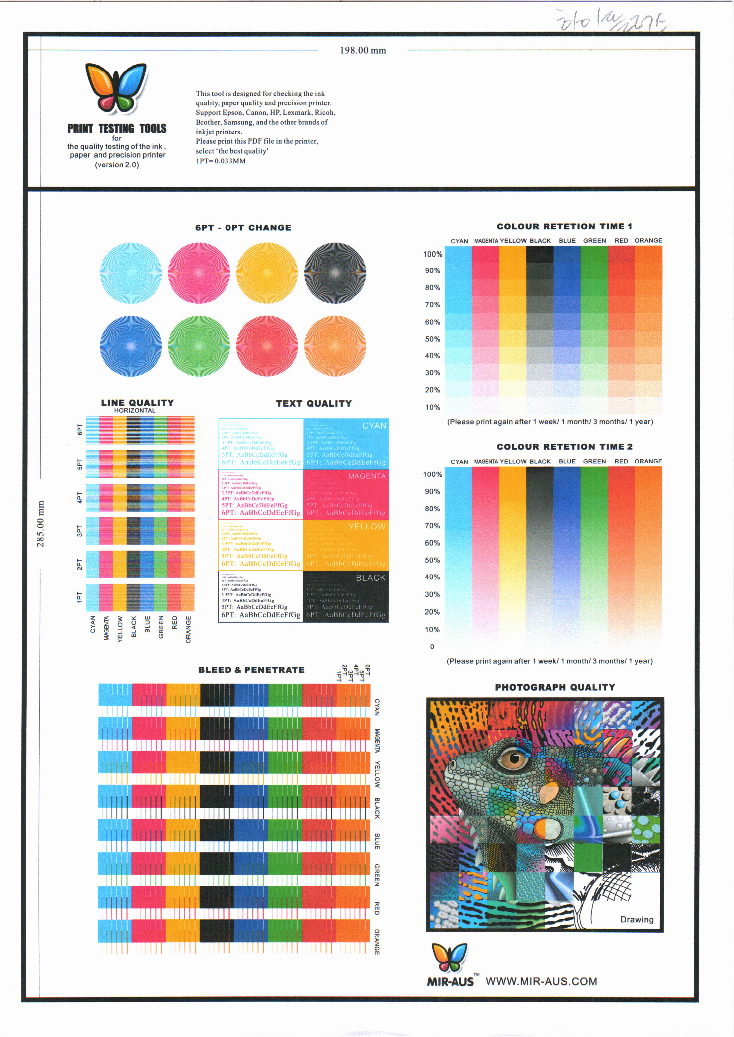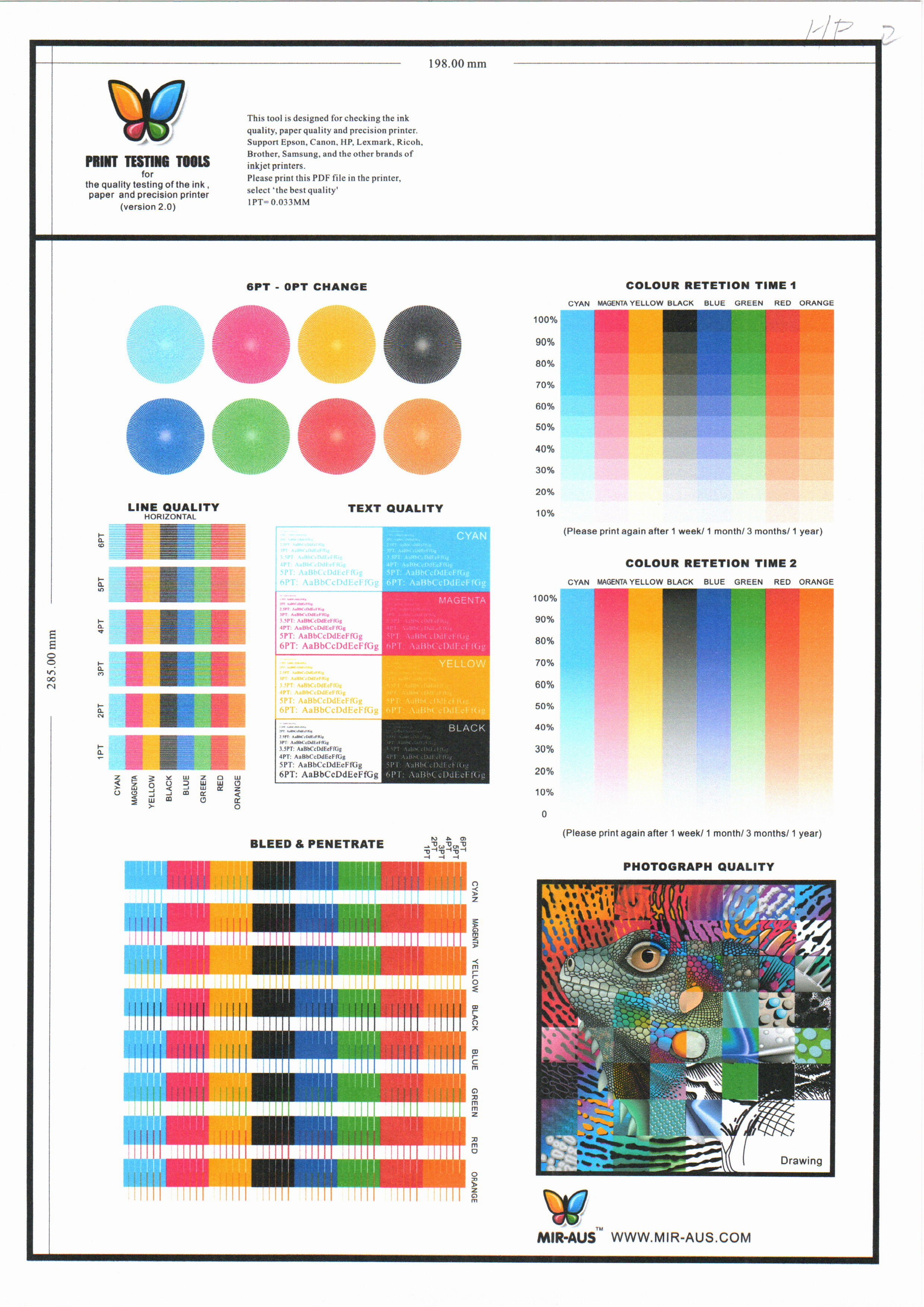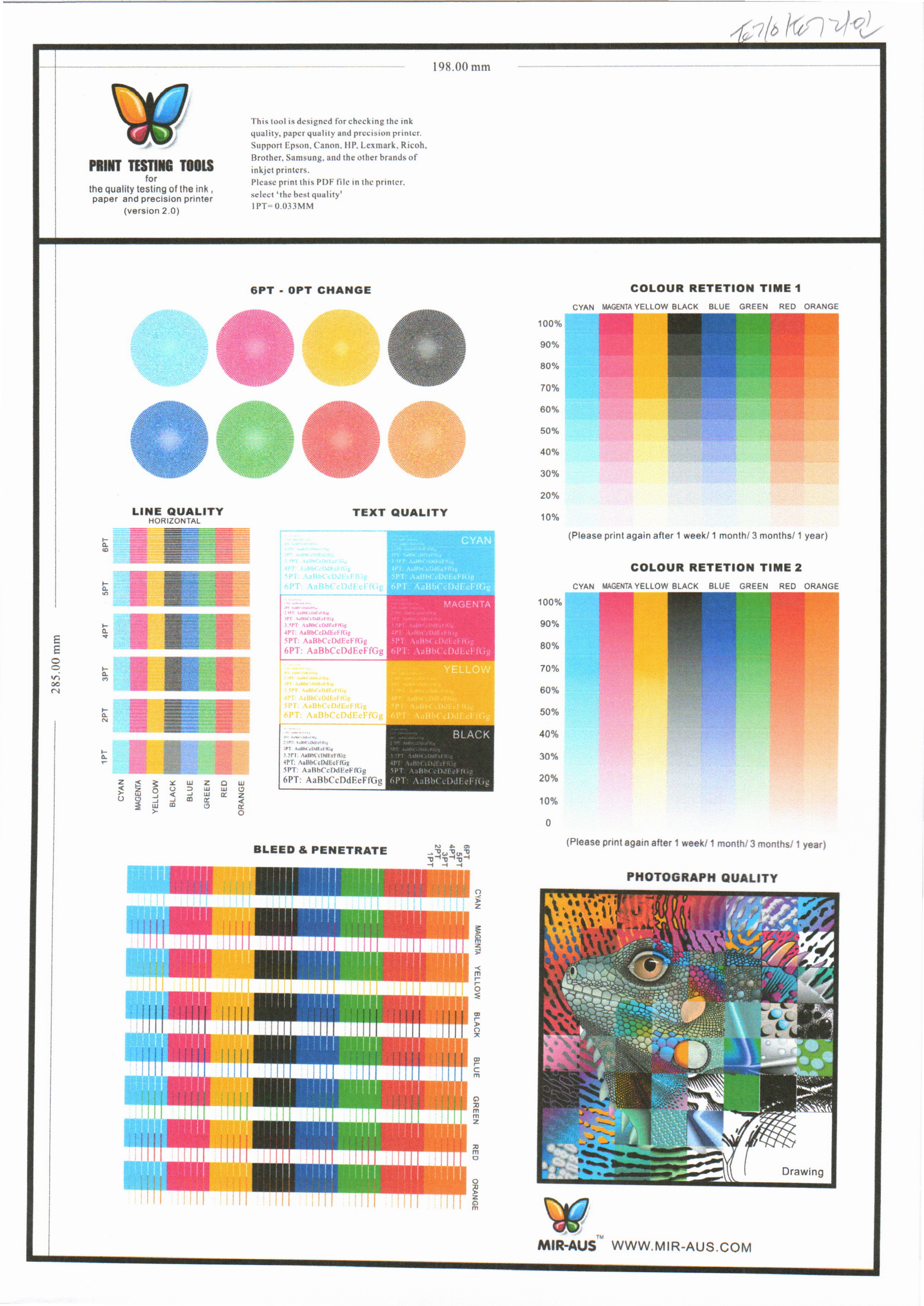 아래 이미지는 표준모드 출력물 비교챠트입니다.